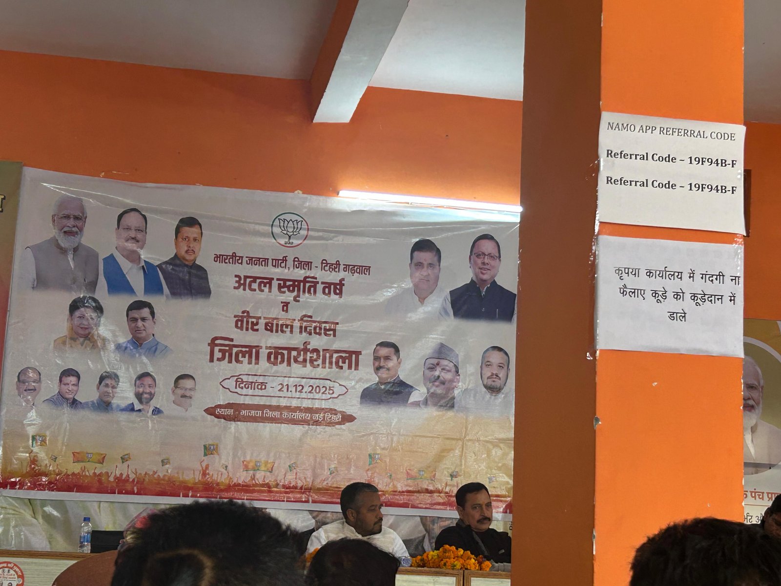 टिहरी भारतीय जनता पार्टी की बैठक रविवार को पार्टी कार्यालय में हुई। इस बैठक में जिला पदाधिकारियों और मंडल पदाधिकारियों ने भाग लिया। आगामी संगठनात्मक कार्यक्रमों, भारत रत्न अटल बिहारी वाजपेयी की जन्म शताब्दी वर्ष और वीर बाल दिवस के आयोजनों पर विस्तृत चर्चा की गई।