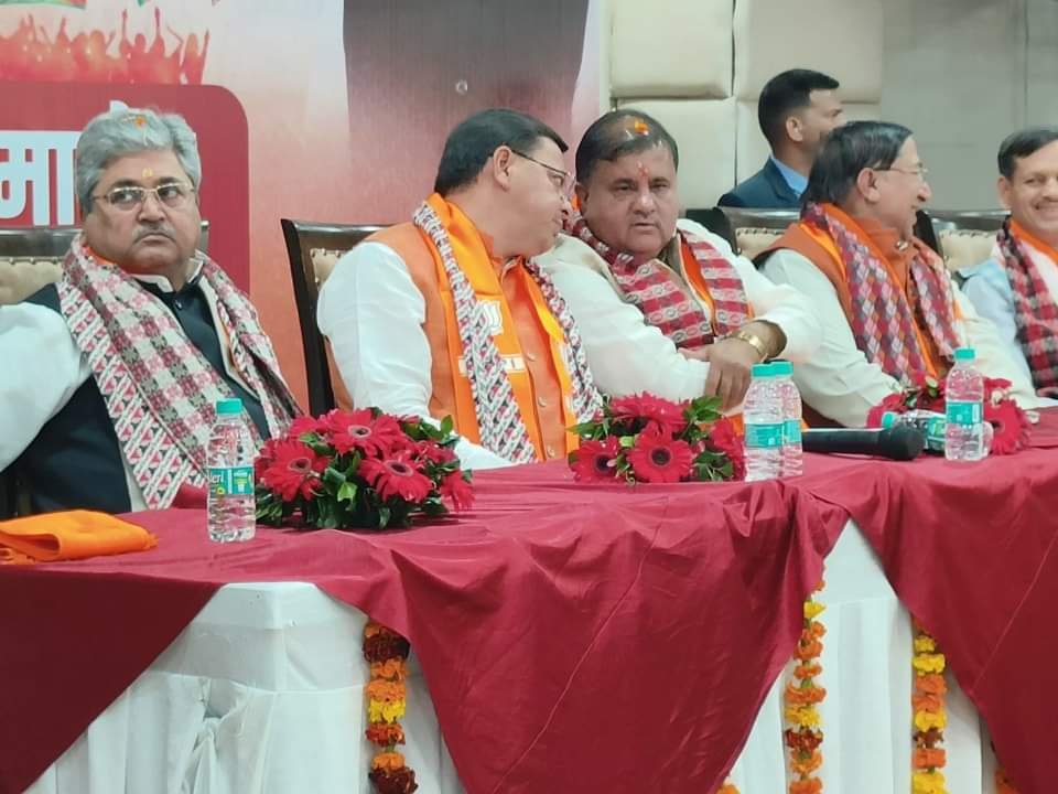 आम लोगों मे 400, 370 पार की चर्चा हो रही है । वहीं प्रदेश अध्यक्ष भट्ट ने सीएम की उपस्थिति में होने वाली प्रत्याशी नामांकन तारीखों ऐलान करते हुए हरिद्वार से पहले ऑनलाइन नामांकन की जानकारी साझा की। इस मौके पर अपने संबोधन में मुख्यमंत्री पुष्कर सिंह धामी ने कहा, आज पीएम मोदी और बीजेपी के पक्ष में देश में शानदार माहौल है । उन्होंने कहा कि उत्तराखंड मोदी के दिल में बसता हैं और यहां के लोगों के दिल में मोदी है। हम सब मोदी का परिवार हैं, इसलिए सभी पुराने रिकॉर्ड ध्वस्त करते हुए पांचों सीट उनकी झोली में अर्पित करना है ।