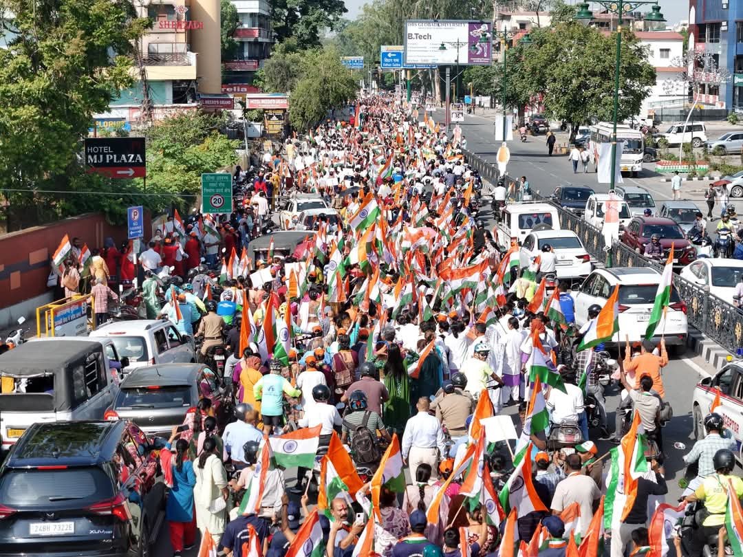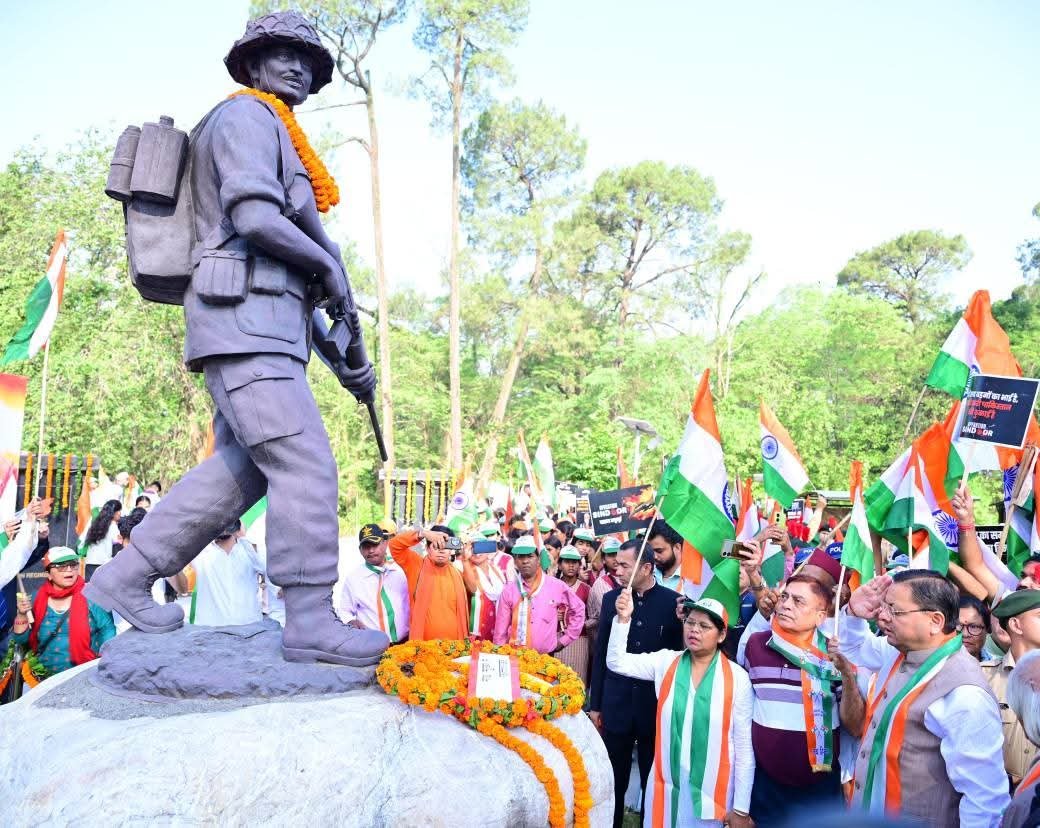 मुख्यमंत्री पुष्कर सिंह धामी के नेतृत्व में आज शौर्य स्थल चीड़बाग से गांधी पार्क तक भव्य “तिरंगा शौर्य सम्मान यात्रा” का आयोजन किया गया। यह यात्रा हाल ही में भारतीय सशस्त्र बलों द्वारा सफलतापूर्वक चलाए गए “ऑपरेशन सिंदूर” की ऐतिहासिक विजय को समर्पित रही। हजारों की संख्या में आमजन, पूर्व सैनिक, युवा वर्ग एवं मातृशक्ति ने तिरंगे के साथ पद यात्रा में भाग लिया। मुख्यमंत्री ने इस अवसर पर शौर्य स्थल पर पुष्प चक्र अर्पित कर शहीद जवानों को श्रद्धांजलि भी दी।