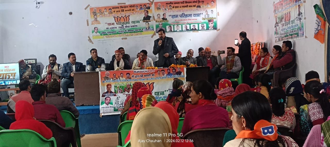 प्रदेश अध्यक्ष श्रीमान जोगिंदर सिंह पुंडीर के द्वारा कहा गया कि देश के यशस्वी प्रधानमंत्री आदरणीय नरेंद्र मोदी जी तथा लोकप्रिय मुख्यमंत्री धामी जी के नेतृत्व में देश तथा प्रदेश निरंतर आगे बढ़ रहा है। तथा देश एवं प्रदेश का किसान निरंतर आगे बढ़ रहा है अध्यक्ष जी कहा कि सरकार किसानों की आय बढ़ाने के लिए विभिन्न प्रकार की योजनाएं चला रही है इन योजनाओं के प्रचार प्रसार के लिए किसान मोर्चा ग्राम परिक्रमा यात्रा आज से शुरू करने जा रही है यात्रा में प्रत्येक जिला एवं मंडल स्तर पर टोली बनाई जाएगी प्रत्येक टोली प्रतिदिन लगभग पांच गांव में संपर्क करेंगे तथा किसानों के उत्थान के लिए चलाई जाने वाली योजनाओं के बारे में लोगों को जागरूक करेंगे ताकि कोई भी लाभार्थी योजना के लाभ लेने से वंचित न रह जाए।