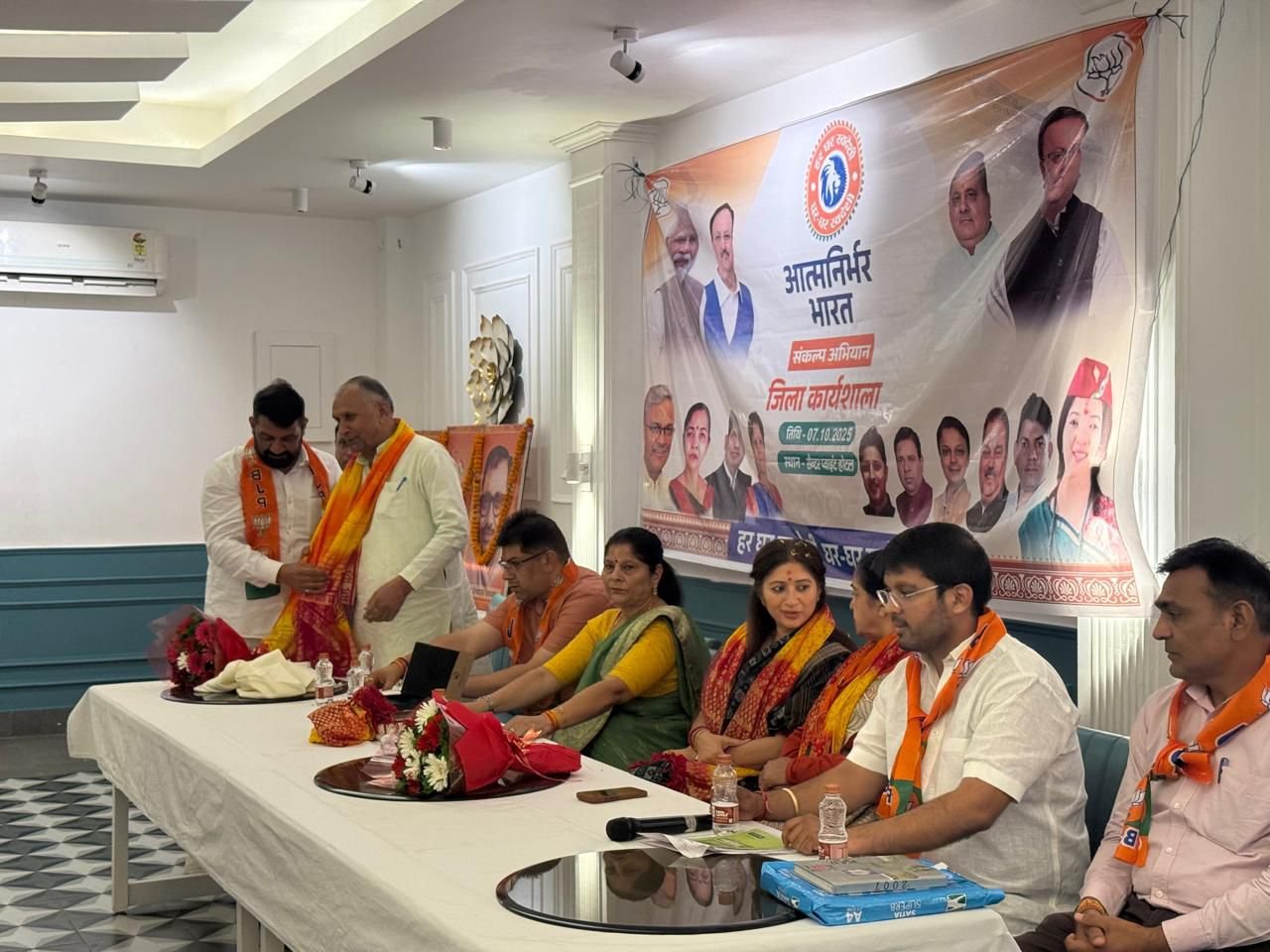 उत्तराखंड बीजेपी ने आत्मनिर्भर भारत संकल्प अभियान के अंतर्गत आज रूड़की में जिला कार्यशाला का आयोजन किया । इस कार्यशाला का उद्देश्य आम नागरिकों को “घर-घर स्वदेशी, हर घर स्वदेशी” के संदेश से जोड़ना और प्रधानमंत्री नरेंद्र मोदी के आत्मनिर्भर भारत के विज़न को जन-जन तक पहुंचाना रहा। कार्यशाला को संबोधित करते हुए प्रदेश महामंत्री दीप्ति रावत भारद्वाज ने कहा कि प्रधानमंत्री नरेंद्र मोदी द्वारा प्रारंभ किया गया आत्मनिर्भर भारत अभियान केवल एक नारा नहीं, बल्कि राष्ट्र के समग्र विकास का संकल्प है। ‘मेक इन इंडिया’, ‘वोकल फॉर लोकल’ और ‘स्टार्टअप इंडिया’ जैसी योजनाओं के माध्यम से देश ने विदेशी निर्भरता को कम करते हुए स्थानीय उद्योगों, छोटे कारोबारियों और युवाओं को नई दिशा और अवसर प्रदान किए हैं।