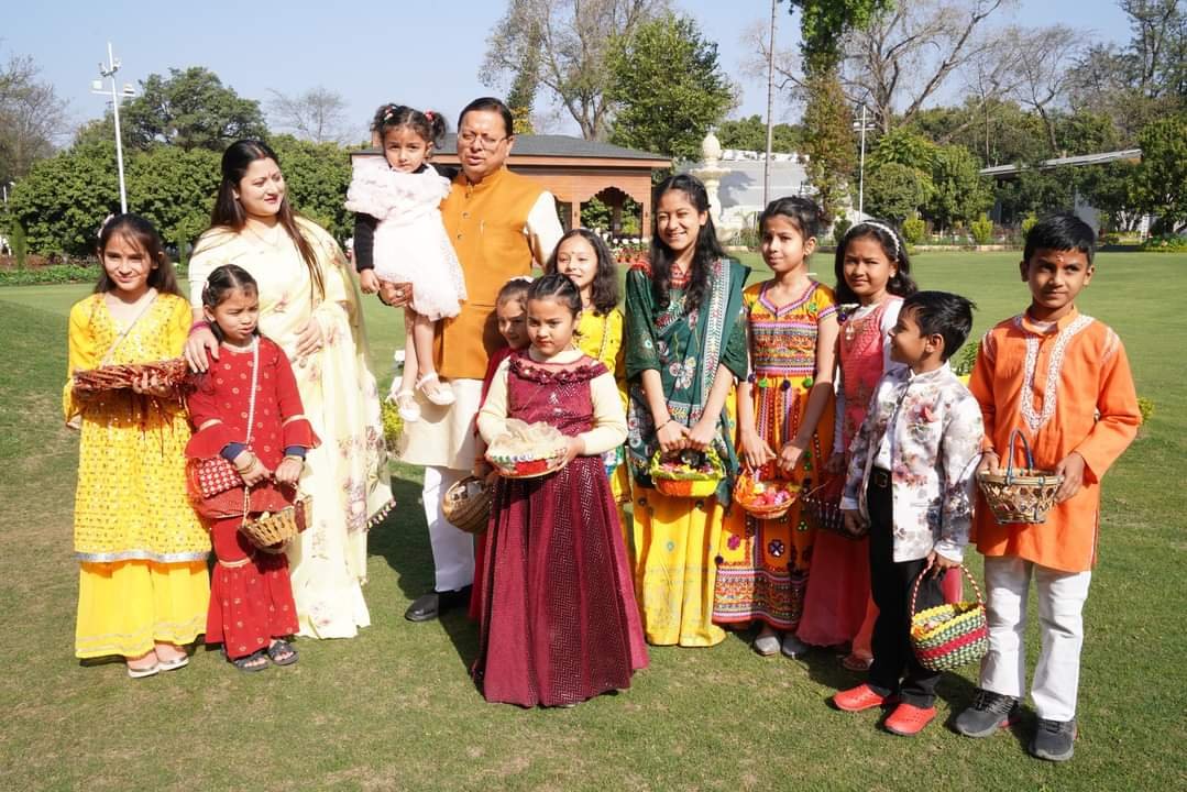 मुख्यमंत्री की उपस्थिति में रंग बिरंगे परिधानों में बच्चों ने देहरी में फूल व चावल बिखेरकर पारंपरिक गीत ‘फूलदेई छमा देई, जतुक देला, उतुक सई,फूलदेई छमा देई, दैणी द्वार भर भकार’ गाते हुए त्योहार की शुरुआत की। मुख्यमंत्री ने बच्चों को आशीर्वाद देते हुए उनके उज्ज्वल भविष्य की कामना की।