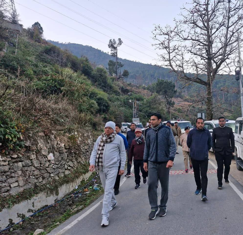 मुख्यमंत्री पुष्कर सिंह धामी ने दो दिवसीय जौनसार बावर दौरे पर आज हनोल (जनपद देहरादून) में प्रातः काल भ्रमण के दौरान स्थानीय लोगों से भेंट कर सरकार द्वारा संचालित विभिन्न योजनाओं का फीडबैक लिया। इस दौरान मुख्यमंत्री ने विद्यालय जा रही छात्राओं से मिलकर परीक्षाओं हेतु शुभकामनाएं दी। इस अवसर पर उन्होंने अधिकारियों के साथ महासू देवता मंदिर क्षेत्र के पुनर्विकास के मास्टर प्लान पर विस्तृत चर्चा कर कार्यों में तेज़ी लाने के निर्देश दिए।