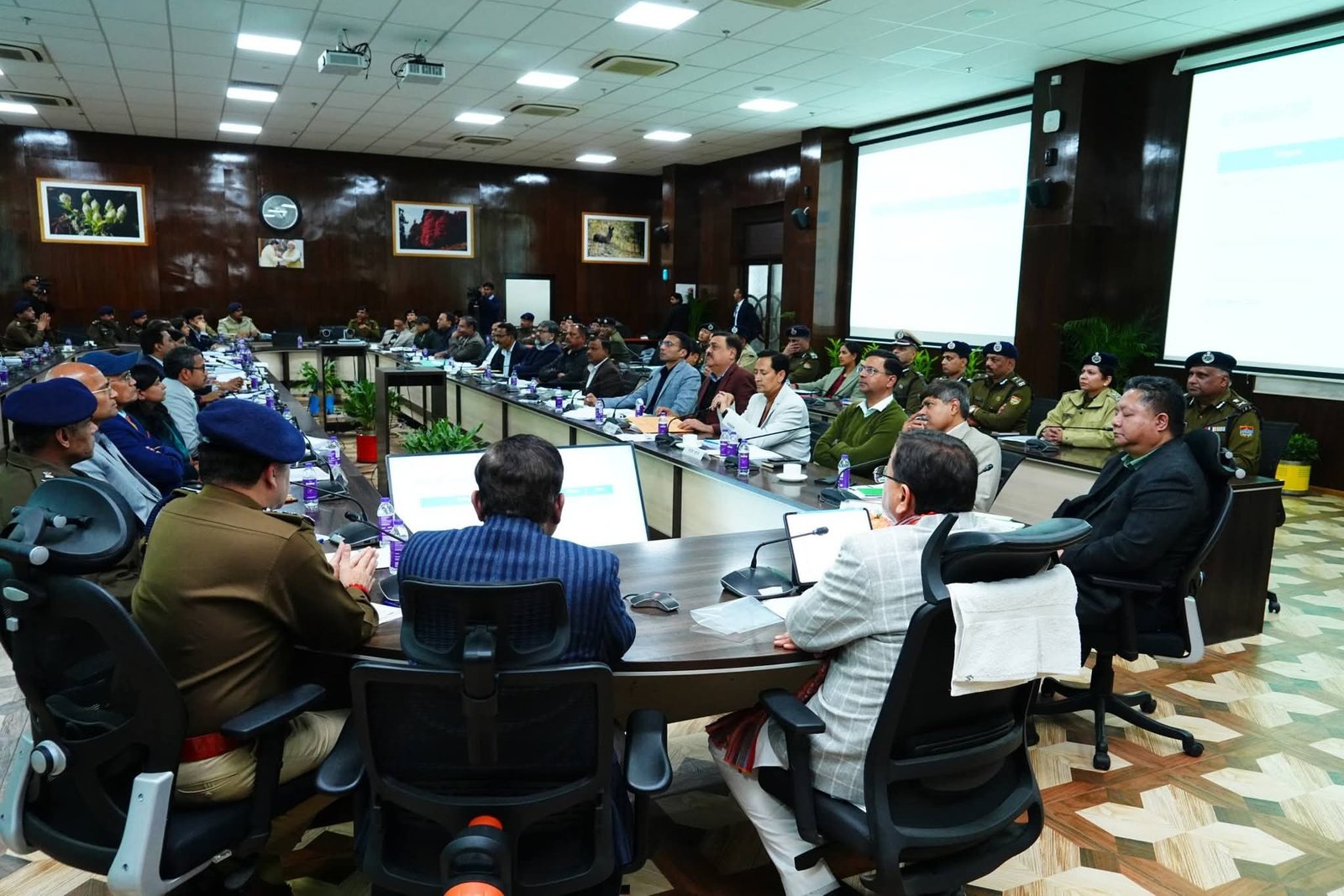 सचिवालय में आयोजित उच्चस्तरीय बैठक में मुख्यमंत्री पुष्कर सिंह धामी ने अखिल भारतीय डीजी/आईजी सम्मेलन से प्राप्त निष्कर्षों की समीक्षा करते हुए राज्य की कानून व्यवस्था, प्रशासनिक कार्यप्रणाली, सुरक्षा व्यवस्था, पर्यटन प्रबंधन, राजस्व, नशा मुक्ति, अभियोजन, कारागार सुधार एवं जनशिकायत निवारण से जुड़े विषयों पर गहन समीक्षा की। बैठक में मुख्य सचिव सहित सभी जिलों के जिलाधिकारी, वरिष्ठ पुलिस अधीक्षक, पुलिस एवं प्रशासन के वरिष्ठ अधिकारी उपस्थित रहे। मुख्यमंत्री ने कहा कि दिल्ली–देहरादून एक्सप्रेस-वे के खुलने के बाद राज्य में पर्यटकों की संख्या में भारी वृद्धि होगी। इसे देखते हुए पर्यटकों के लिए होटल, आवास, पार्किंग, ट्रैफिक प्लान, यातायात प्रबंधन एवं सुरक्षा व्यवस्था से संबंधित सभी आवश्यक तैयारियाँ समयबद्ध रूप से पूरी की जाए । उन्होंने स्पष्ट निर्देश दिए कि किसी भी स्थिति में अव्यवस्था नहीं होनी चाहिए। मुख्यमंत्री ने बताया कि कैंची धाम बाईपास जून माह तक पूर्ण कर लिया जाएगा, जिससे श्रद्धालुओं एवं पर्यटकों को बड़ी राहत मिलेगी। पुलिस व्यवस्था पर सख्त रुख अपनाते हुए मुख्यमंत्री ने कहा कि थाना चौकियां सहित धरातल पर वर्क कल्चर में तत्काल सुधार किया जाए। आम आदमी के साथ मानवीयता, संवेदनशीलता और सम्मानजनक व्यवहार सुनिश्चित किया जाए। निर्दोष नागरिकों को अनावश्यक रूप से परेशान करने की किसी भी शिकायत को गंभीरता से लिया जाएगा। मुख्यमंत्री ने लैंड फ्रॉड के मामलों पर कठोर कानून बनाने के निर्देश दिए। उन्होंने कहा कि भूमि से जुड़े अपराधों में संलिप्त लोगों को किसी भी सूरत में बख्शा नहीं जाएगा।