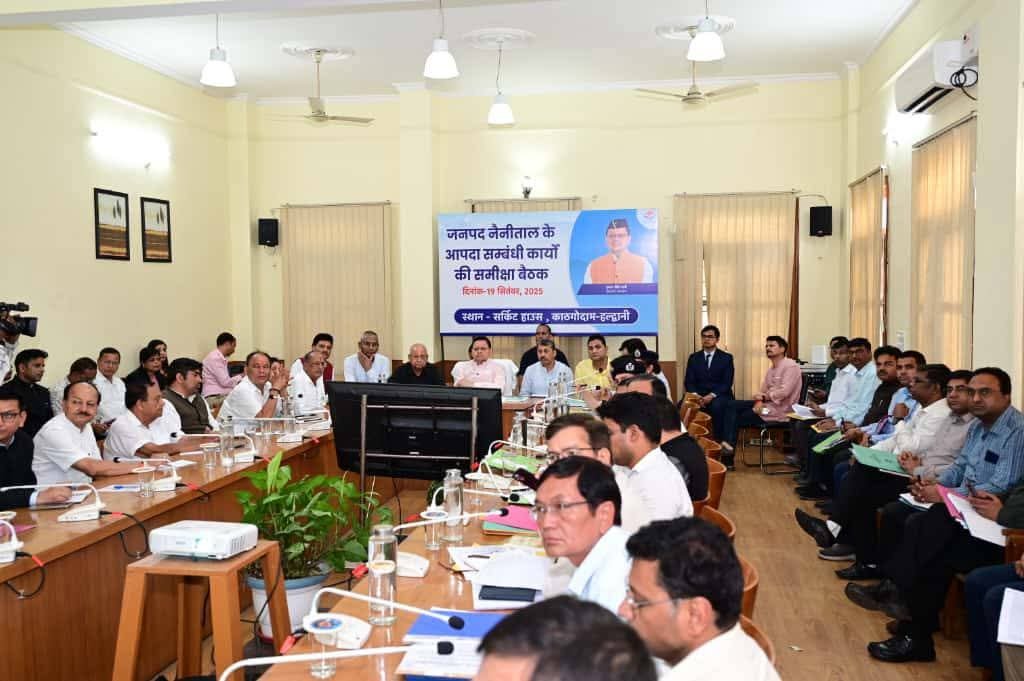 सर्किट हाउस काठगोदाम, हल्द्वानी में मुख्यमंत्री पुष्कर सिंह धामी ने शनिवार को आपदा से हुई क्षति, विद्युत, पेयजल और मोटर मार्गों की अद्यतन स्थिति की उच्चस्तरीय समीक्षा बैठक की। माननीय मुख्यमंत्री ने कहा कि राज्य सरकार प्रभावित जनता के साथ खड़ी है और राहत व पुनर्निर्माण कार्यों को प्राथमिकता के साथ अंजाम दिया जा रहा है। उन्होंने अधिकारियों को स्पष्ट निर्देश दिए कि जनता को त्वरित राहत उपलब्ध कराना और समयबद्ध ढंग से पुनर्निर्माण कार्य पूरे करना सर्वोच्च प्राथमिकता होनी चाहिए।