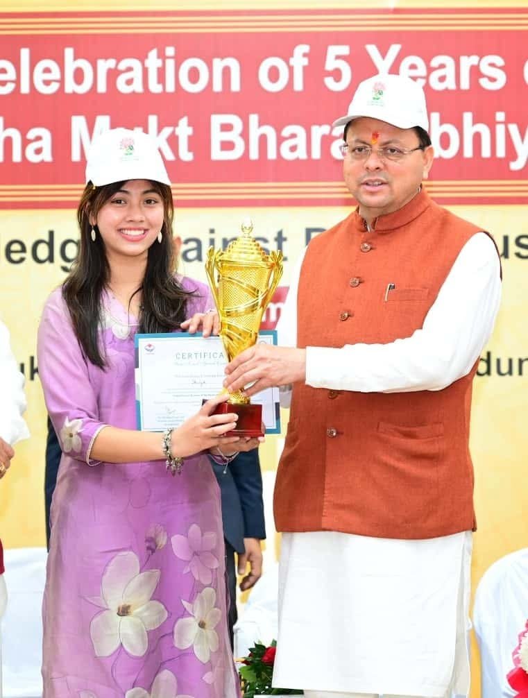 उन्होंने कहा कि उत्तराखण्ड की गौरवशाली पहचान “ऐपण कला” को भी इस अभियान से जोड़ा गया है, आज नशा-विरोधी संदेशों से सुसज्जित ‘ऐपण’ पेंटिंग्स हमारे शैक्षणिक संस्थानों और सार्वजनिक स्थलों की शोभा बढ़ा रही हैं। साथ ही युवाओं को नशे से दूर रखने और उनकी ऊर्जा को सकारात्मक दिशा देने के लिए राज्य में ‘दगड़िया क्लब’ भी बनाए हैं। मुख्यमंत्री ने युवाओं को नशा मुक्त भारत अभियान की शपथ भी दिलाई, साथ ही स्कूल कॉलेजों में राज्य स्तर पर आयोजित भाषण एवं निबंध प्रतियोगिता के विजेताओं को भी सम्मानित किया।