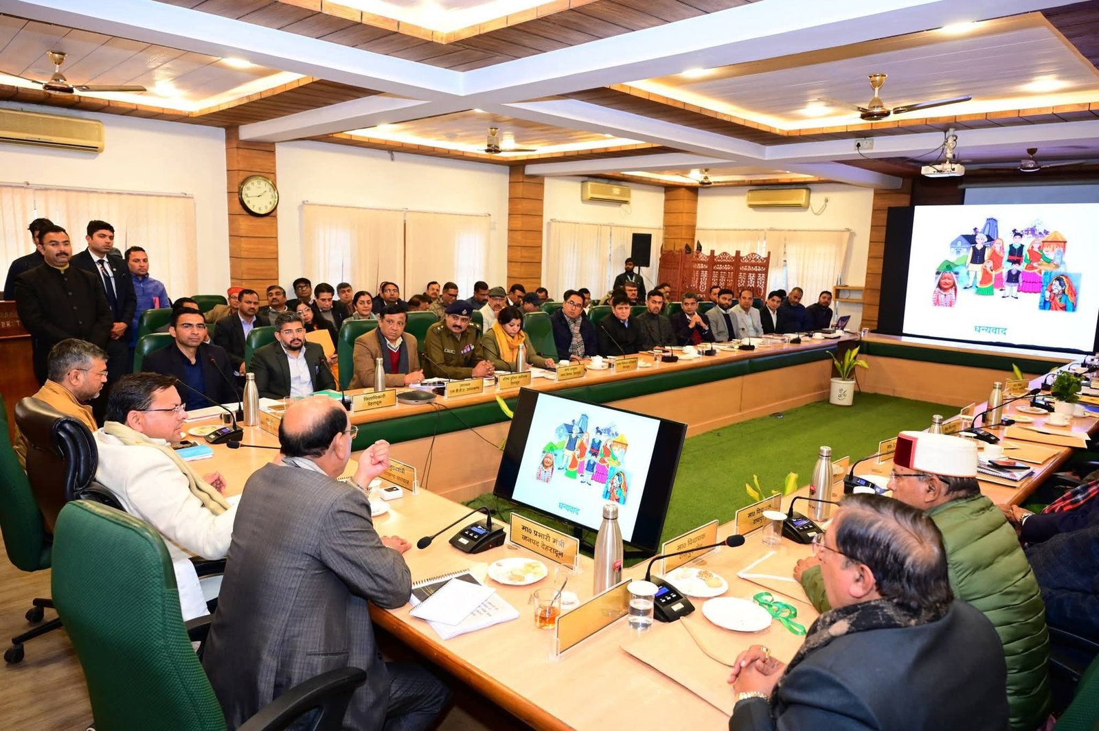 कैबिनेट मंत्री एवं जनपद प्रभारी मंत्री सुबोध उनियाल ने कहा कि साइबर अपराध पर प्रभावी नियंत्रण की दिशा में और अधिक प्रभावी प्रयास किए जाएं। DM देहरादून सविन बंसल ने जनपद में संचालित विकास कार्यों की प्रगति एवं प्रमुख उपलब्धियों से मुख्यमंत्री को अवगत कराया। उन्होंने बताया कि UCC के अंतर्गत जिले में अब तक 61 हजार पंजीकरण किए जा चुके हैं। सीएम हेल्पलाइन पर पंजीकृत 7,662 शिकायतों में से 6,480 का निस्तारण किया जा चुका है, जबकि शेष शिकायतों का समयबद्ध समाधान किया जा रहा है। जिले में कुल 57 हेक्टेयर अतिक्रमित भूमि में से 47 हेक्टेयर भूमि को अतिक्रमण मुक्त कराया जा चुका है।