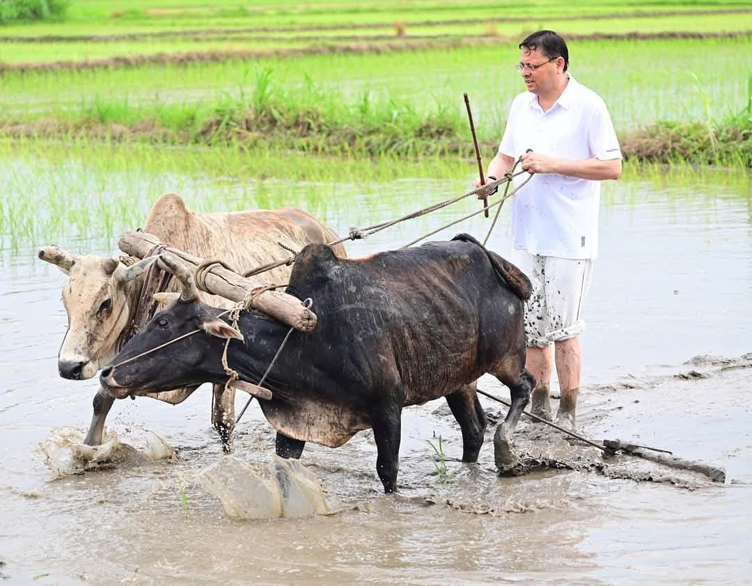 सीएम धामी ने की रोपाई, कांग्रेस ने कसा तंज