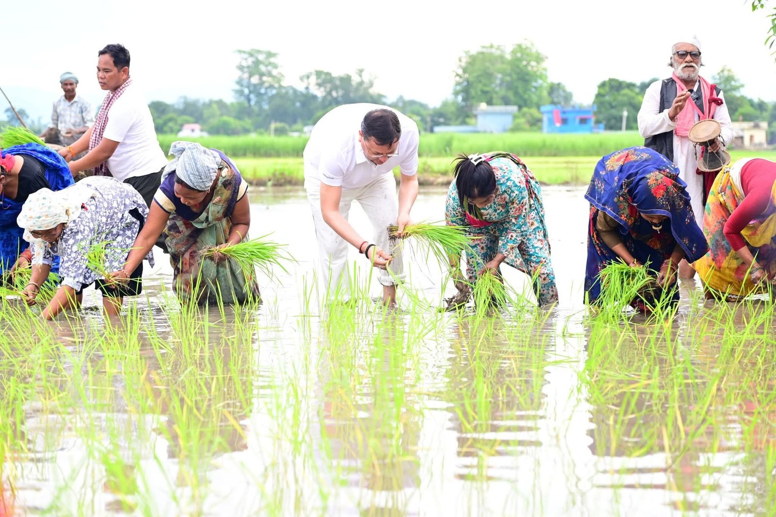 सीएम धामी ने की रोपाई, कांग्रेस ने कसा तंज