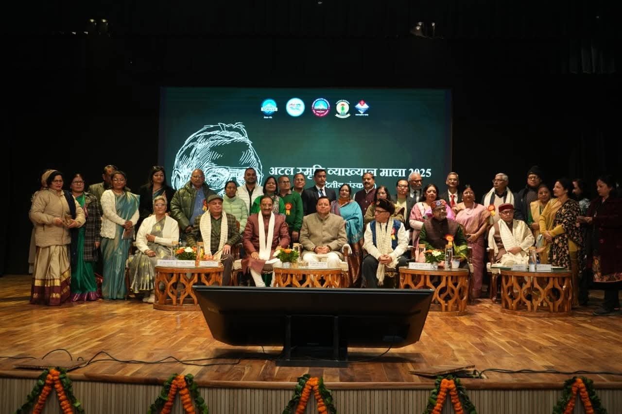 मुख्यमंत्री पुष्कर सिंह धामी ने आज लेखक गॉव थानो, देहरादून में भारत रत्न अटल बिहारी वाजपेयी की जयन्ती के अवसर पर आयोजित अटल स्मृति व्याख्यान माला-2025 कार्यक्रम में प्रतिभाग किया। इस अवसर पर मुख्यमंत्री ने अटल प्रेक्षाग्रह का भी लोकार्पण किया।