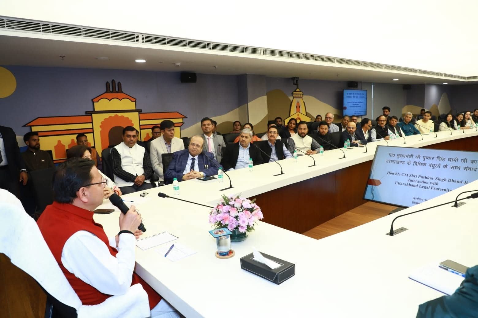 मुख्यमंत्री पुष्कर सिंह धामी ने नई दिल्ली स्थित उत्तराखण्ड निवास में उत्तराखण्ड राज्य की रजत जयंती वर्ष कार्यक्रम के तहत प्रवासी उत्तराखण्डी अधिवक्ताओं के साथ संवाद किया। इस दौरान मुख्यमंत्री ने राज्य के विकास हेतु अधिवक्ताओं के साथ गहन विचार-मंथन किया। उन्होंने कानून व्यवस्था को सुदृढ़, पारदर्शी और प्रभावी बनाने के लिए सरकार द्वारा किए जा रहे प्रयासों और नीतिगत पहलों की जानकारी साझा की।