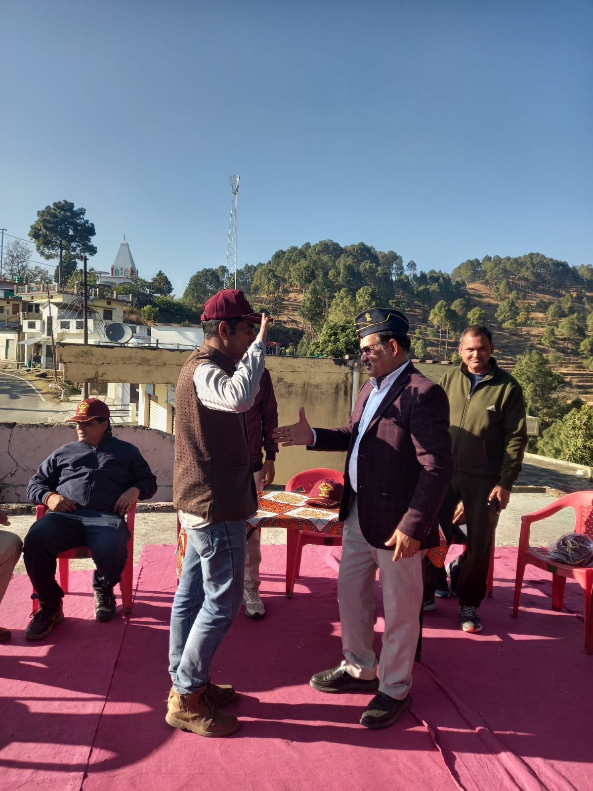 गणतंत्र दिवस के शुभ अवसर पर आयोजित समारोह में बड़ी तादाद में पूर्व सैनिकों ने प्रतिभाग किया समारोह में मुख्य अतिथि उत्तराखंड कांग्रेस के पूर्व सैनिक विभाग के प्रदेश अध्यक्ष कर्नल राम रतन नेगी ने पूर्व सैनिकों का पी कैप पहना कर सम्मानित किया ।