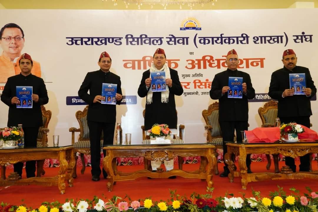 मुख्यमंत्री श पुष्कर सिंह धामी ने आज देहरादून में उत्तराखण्ड प्रान्तीय सिविल सेवा (कार्यकारी शाखा) संघ के वार्षिक अधिवेशन में बतौर मुख्य अतिथि प्रतिभाग कर संघ की वार्षिक पत्रिका ‘आरोही’ का विमोचन किया। मुख्यमंत्री ने कहा कि आप सभी सरकार के प्रमुख अंग हैं, जब आपके द्वारा जनहित में सराहनीय कार्य किये जाते हैं, तो इससे सरकार के प्रति जनता का विश्वास बढ़ता है। सरकार, अधिकारी और जन सामान्य के बीच एक सेतु का कार्य करते हैं। मुख्यमंत्री ने कहा कि उत्तराखण्ड को श्रेष्ठ राज्यों की श्रेणी में लाना हम सबकी सामूहिक जिम्मेदारी है। सिलक्यारा ऑपरेशन, इन्वेस्टर समिट के आयोजन, अतिक्रमण हटाने एवं सरकार द्वारा चलाये जा रहे विभिन्न अभियानों में हमारे इन अधिकारियों ने महत्वपूर्ण योगदान दिया है।
