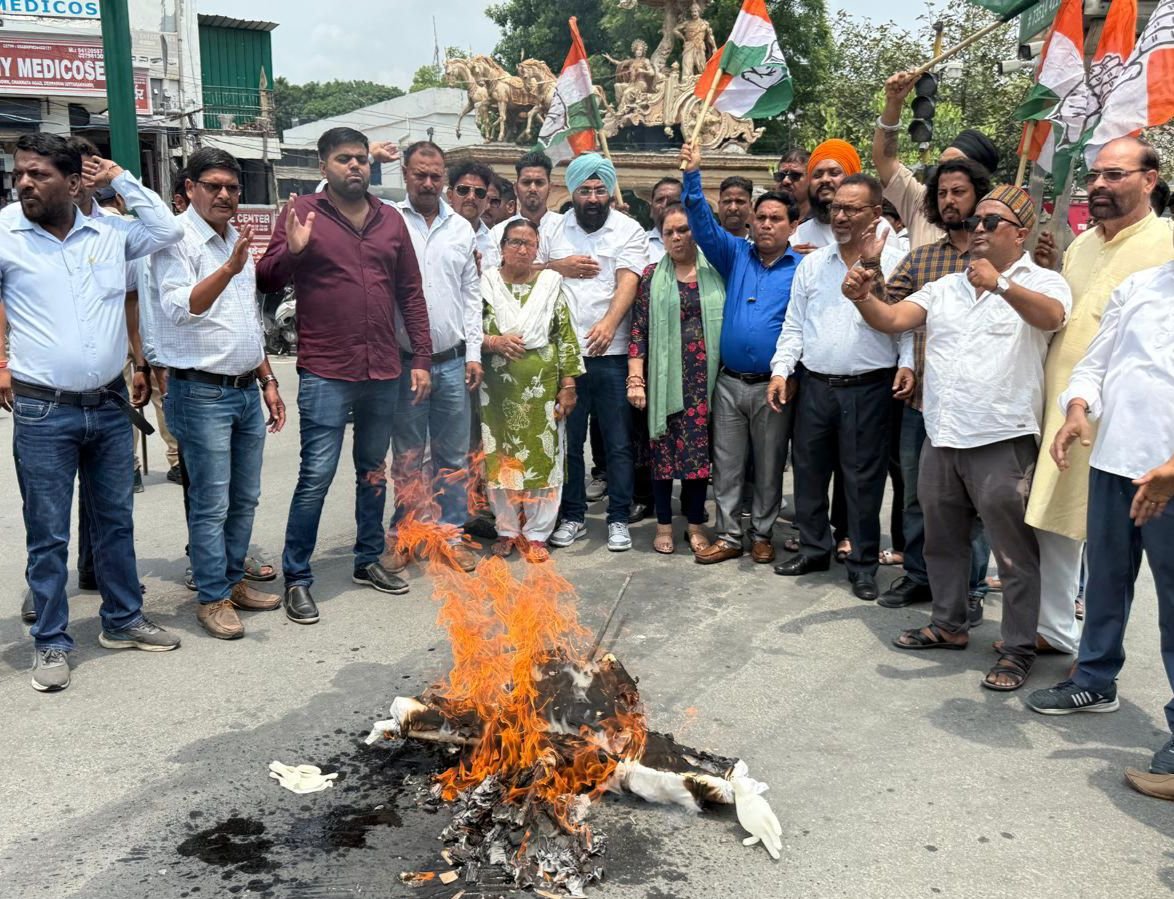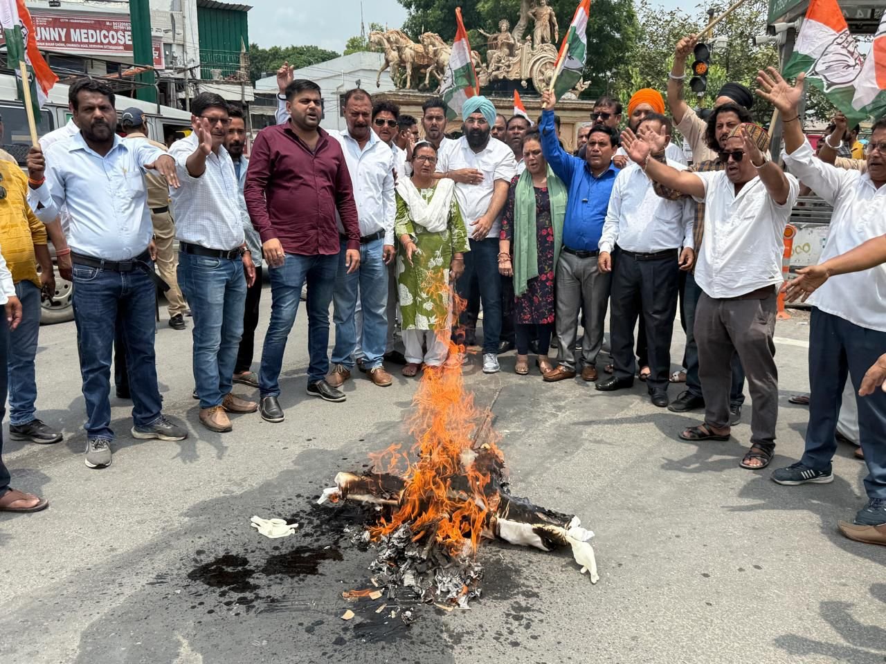 कांग्रेस ने जलाया दुष्यंत गौतम का पुतला बीजेपी की मानसिकता पर उठाए सवाल