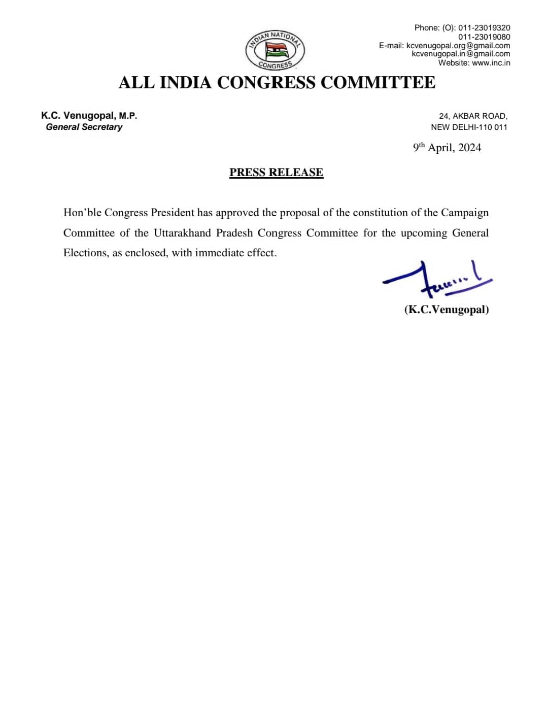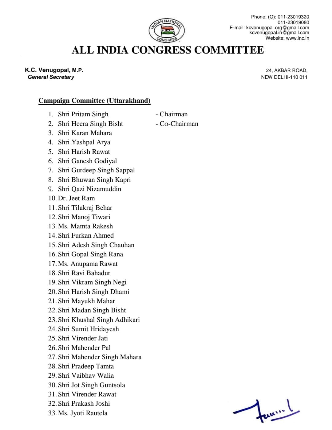 लोकसभा चुनाव के लिए कांग्रेस ने उत्तराखंड में प्रचार कमेटी का ऐलान कर दिया है। प्रीतम सिंह को कैंपेनिंग कमेटी का चेयरमैन बनाया गया है जबकि पूर्व कैबिनेट मंत्री हीरा सिंह बिष्ट को चेयरमैन बनाया गया है। 100 लोगों को इस कमेटी में शामिल किया गया है। जिसमें लगभग सभी सीनियर नेताओं को जगह दी गई है।