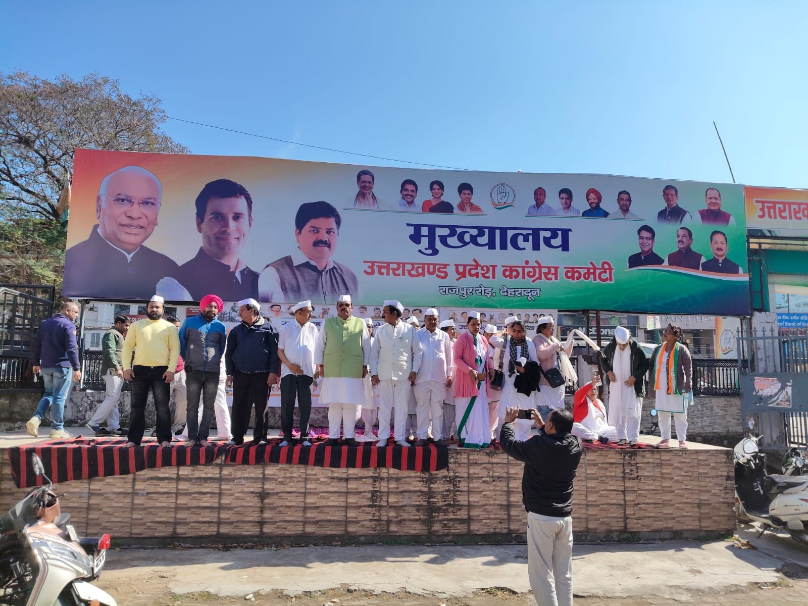 कुछ के नाम आपने बदले जैसे पहले राम राम जी बोला जाता था अब आप जय श्री राम बुलवा रहे हो ,मनरेगा का नाम वी बी जी राम जी रख दिया, नोटों को बदल कर चूर्ण जैसे नोटो को ला दिया , थानों चौकियों के रंग भगवा कर दिया , सिक्कों में भगवा झंडा लगा दिया, नोटों में से राष्ट्रपिता महात्मा गांधी जी की फोटो को हटाने का प्रयास,संविधान को बदलने की कोशिश ,मतदाताओं की सूची में से नाम को हटा देना और अन्य मतदाताओं के नाम जोड़ देना ,हिंदू मुस्लिम में झगड़ा ,आज वर्तमान में यूजीसी एक्ट लाकर जातियों का बंटवारा, कानून की किताबों के नाम बदल देना, किसानों पर अत्याचार, कोविड के समय पर जनमानस से तालियां बजवानी टोर्च की लाइट जलवाना , गणेश जी को दूध पिलवा देना , सब्सिडी के नाम पर गैस मूल्य को बढ़ाकर जनमानस को गुमराह करना, जो जन् मानस आप के खिलाफ कुछ बोलता है उसके घर आप अपनी ताकत से आप छापे डलवा देते हो, शंकराचार्यों का अपमान, हमारे सम्मानित प्रति पक्ष नेता राहुल गांधी के ऊपर कई प्रहार किए और आज संसद में बोलने को भी रोका जा रहा है जन मानस के और कांग्रेस के बब्बर शेर हैं। शर्मा ने कहा कि कांग्रेस के समय से जो योजनाएं चली आ रही है उनको सिर्फ बदलकर और जनमानस को गुमराह करके योजनाओं को चलाया जा रहा है जिससे जनमानस को यह लगे की वर्तमान की सरकार बहुत कुछ कर रही है लेकिन धरातल पर ज्यों का त्यों पूर्व प्रदेश अध्यक्ष करण मेहरा जी ने संबोधित करते हुए कहा कि जिस तरीके से मनरेगा को समाप्त करने की ओर को केंद्रीय सरकार लेकर चल रही है वह बड़ा अफसोजनक है गारंटी सभी बीमारी हो गया स्टेटस जिनकी आर्थिक स्थिति ठीक नहीं है उनसे भी एक हजार की 40% प्रतिभा करें 60% केवल केंद्र सरकार देगी ऐसे में उसे राज्य में रहने वाले नागरिकों की रोजगार की गारंटी का कहा क्या होगा दूसरा मनरेगा की जो आत्मा थी वह गांधी के द्वारा दिए गए शब्द सूरज की थी जिसमें नीचे से योजनाएं बने और वह इंप्लीमेंट हो जो आवश्यकता है उसके हिसाब से योजना बनाएं और इसमें उल्टा हो गया इसमें ऊपर से योजना आएंगे जिसको नीचे लोगों को करना पड़ेगा तो यह अफसोजनक है धरने में मुख्य रूप से मनमोहन शर्मा प्रदेश अतिरिक्त मुख्य संगठक/ उपाध्यक्ष, प्रदेश अध्यक्ष गणेश गोदियाल, पूर्व अध्यक्ष कारण मेहरा, प्रदेश महिला अध्यक्ष ज्योति रौतेला लालचंद शर्मा जसविंदर सिंह जोगी नवीन जोशी सूर्यकांत धस्माना , जगदीश धीमान, गोदावरी ,राजकुमार यादव सचिव, सावित्री थापा , इंदु थापा, गोपाल सिंह गढ़िया सुनीता धारियां, मंजू, रंजना, माया शाही देवसर थापा, कलावती शाही मीनाक्षी Shahid Ahmad Geeta Devi Manju Chauhan Shila shrivtastav Rajini मीना सुनील बंगा आमिर खान संजय कनौजिया आशा मनोरमाशाह गुरनाम सिंह भागीदारी की
