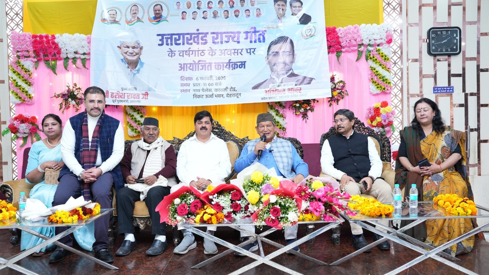 देहरादून में बल्लीवाला चौक स्थित वैडिंग पॉइंट में कांग्रेस ने उत्तराखंड के राज्य-गीत की वर्षगांठ कार्यक्रम का आयोजन किया। जिसका संयोजन कांग्रेस प्रवक्ता अभिनव थापर ने किया। उत्तराखंड की सांस्कृतिक अस्मिता, लोक चेतना और देवभूमि की आत्मा को स्वर देने वाला राज्य का आधिकारिक गीत “उत्तराखंड देवभूमि–मातृभूमि” आज सरकारी उपेक्षा का शिकार बना हुआ है। ये वही राज्य गीत है, जिसे 6 फरवरी 2016 में तत्कालीन मुख्यमंत्री हरीश रावत और उनकी सरकार ने राज्य की जनता को समर्पित किया था। कांग्रेस ने कहा दुर्भाग्यपूर्ण है कि बीते लगभग दस वर्षों से वर्तमान बीजेपी सरकार ने इस राज्य गीत को जानबूझकर भुलाने और हाशिये पर डालने का काम किया है। राज्य गीत प्रख्यात गीतकार हेमंत बिष्ट (नैनीताल) के सारगर्भित शब्दों, गढ़रत्न नरेंद्र सिंह नेगी के संगीत निर्देशन एवं स्वर तथा अनुराधा निराला की सशक्त आवाज़ से सुसज्जित है। राज्य गीत के चयन हेतु गठित समिति के अध्यक्ष वरिष्ठ साहित्यकार लक्ष्मण सिंह बटरोही थे, जिसमें स्वयं नरेंद्र सिंह नेगी भी सदस्य रहे। यह गीत उत्तराखंड की लोक संस्कृति, आस्था, प्रकृति और परंपराओं का जीवंत दस्तावेज़ है।  कांग्रेस प्रवक्ता अभिनव थापर के संयोजन में कांग्रेस कार्यकर्ताओं ने राज्य गीत को पुनः सार्वजनिक रूप से गाया और बजाया । इस अवसर पर पूर्व मुख्यमंत्री हरीश रावत, प्रदेश कांग्रेस अध्यक्ष गणेश गोदियाल की गरिमामयी उपस्थिति रही, जबकि कार्यक्रम की अध्यक्षता खुद गढ़ रत्न नरेंद्र सिंह नेगी ने की। इस अवसर पर गढ़रत्न नरेंद्र सिंह नेगी ने भावुक होते हुए राज्य गीत की कुछ पंक्तियां गायी और कहा—ये गीत मैंने अपने राज्य के लिए बनाया। इसके लिए मैंने सरकार से एक रुपया भी नहीं लिया, क्योंकि ये मेरी मातृभूमि के प्रति सेवा थी। लेकिन जिस प्रकार इस गीत को ठंडे बस्ते में डाल दिया गया है, वह अत्यंत दुखद और दुर्भाग्यपूर्ण है। मैं व्यक्तिगत रूप से राज्य-गीत की उपेक्षा से बहुत आहत हूं