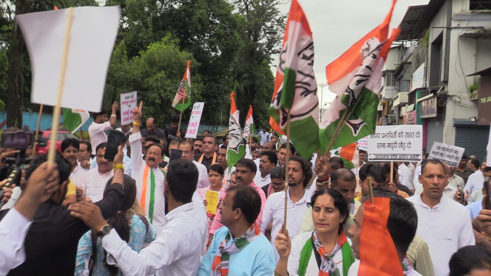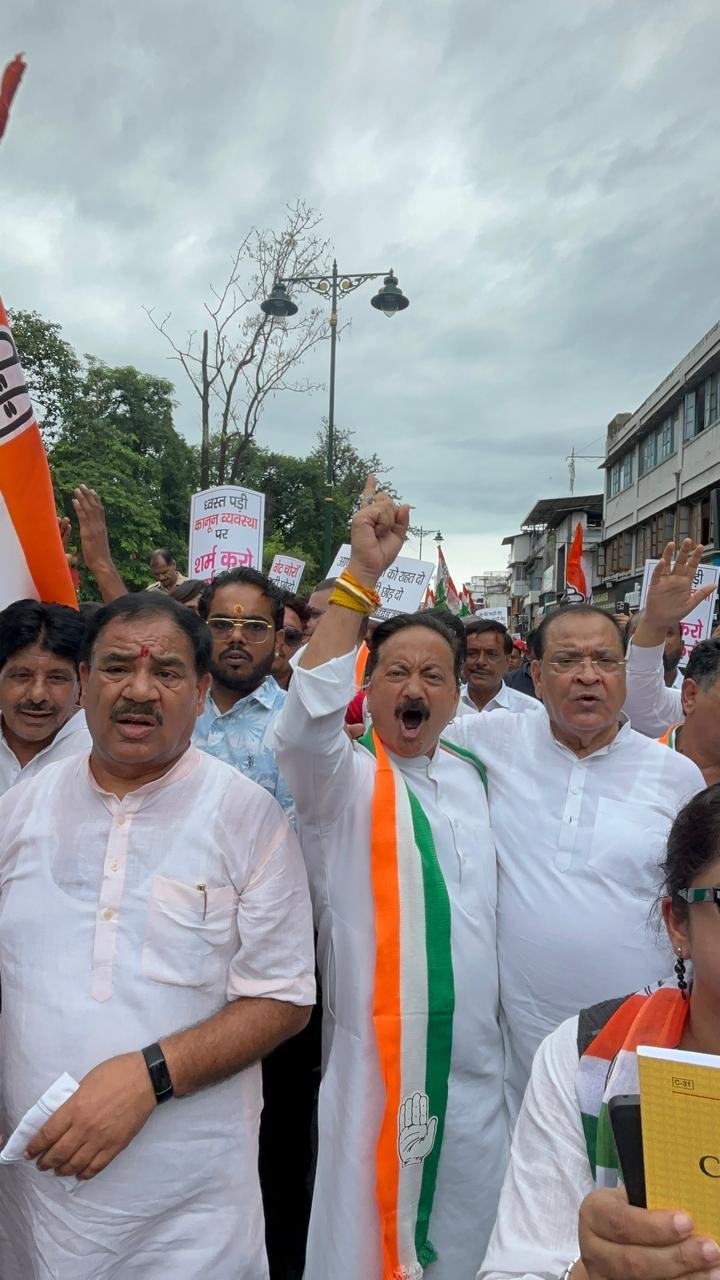कांग्रेस कार्यकर्ताओं का हुजूम प्रदेश सरकार की बर्खास्तगी की मांग करते हुए वोट चोर गद्दी छोड़, गुंडागर्दी की सरकार नहीं चलेगी नहीं चलेगी व आपदा पीड़ितों को न्याय दो के नारे लगाते हुए प्रदेश कांग्रेस कमेटी के वरिष्ठ उपाध्यक्ष संगठन सूर्यकांत धस्माना के संचालन में राजपुर रोड होते हुए बहल चौक दिलाराम बाजार होते हुए कैंट रोड होते हुए राजभवन की ओर बड़ी। हाथीबड़कला पुलिस चौकी की बाद लगाए गए पुलिस बैरियर पर जब कांग्रेस कार्यकर्ताओं का हुजूम पहुंचा तो वहां पहले से तैनात भरी पुलिस बल ने कांग्रेस नेताओं व कार्यकर्ताओं को आगे बढ़ने से रोक दिया जिस पर कांग्रेस अध्यक्ष करण माहरा समेत अनेक नेता बैरिकेडिंग के ऊपर चढ़ गए और बहुत सारे नेता व कार्यकर्ता सड़क पर धरने में बैठ गए और काफी देर तक राज्य सरकार के खिलाफ नारेबाजी होती रही।