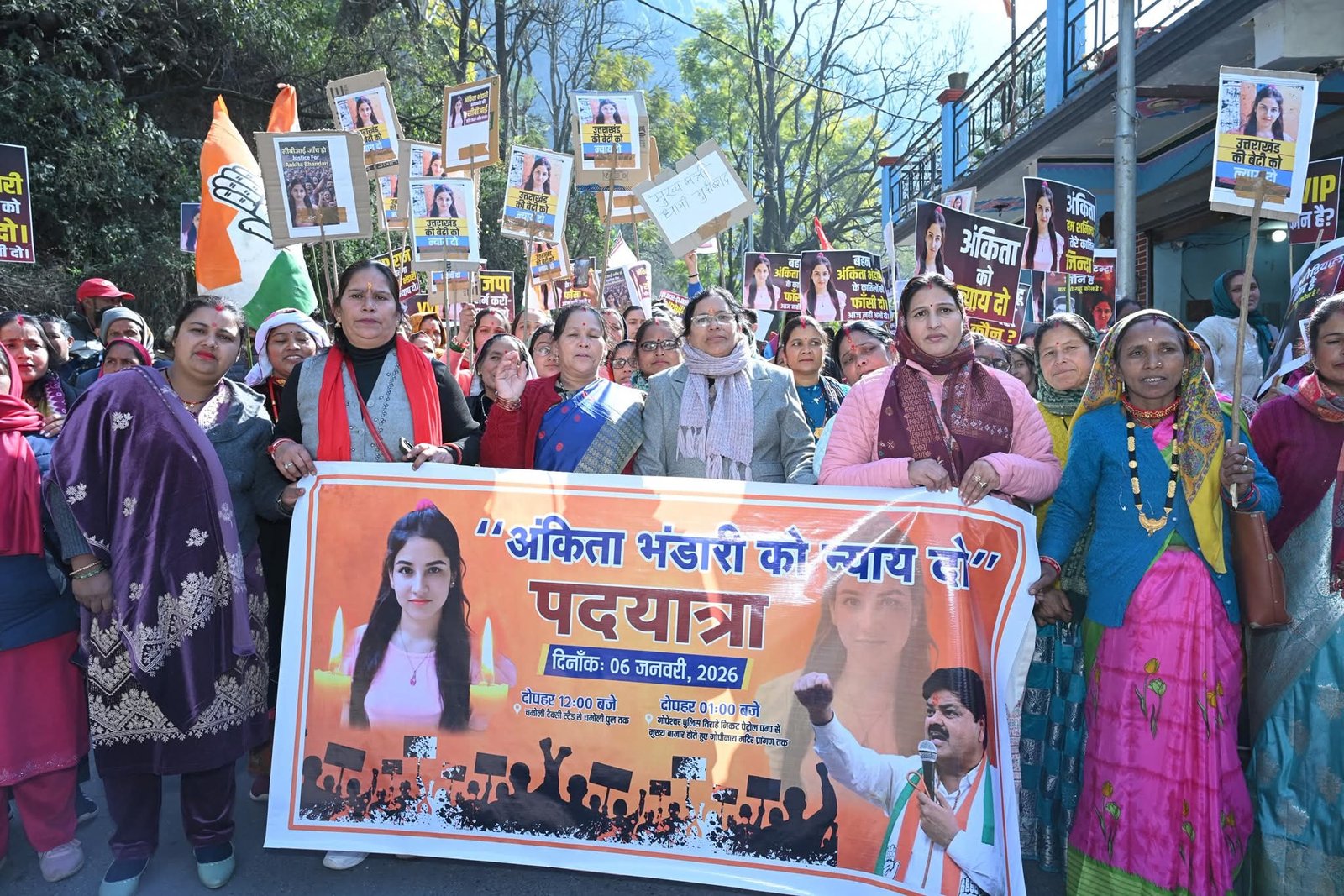 अंकिता भंडारी हत्याकांड की जांच सुप्रीम कोर्ट के सिटिंग जज की निगरानी में सीबीआई से कराये जाने की मांग को लेकर उत्तराखंड प्रदेश कांग्रेस अध्यक्ष गणेश गोदियाल के नेतृत्व में प्रदेशभर में लगातार धरना-प्रदर्शन एवं आन्दोलन का दौर जारी है। प्रदेशभर में चलाये जा रहे आन्दोलन मद्देनजर जहां प्रदेश अध्यक्ष गणेश गोदियाल ने आज नंदप्रयाग, चमोली एवं गोपेश्वर में विशाल जुलूस के साथ अंकिता भंडारी को न्याय दो पद यात्रा निकाली निकालते हुए जनता में अलख जगाने का काम किया। वहीं प्रदेश के पूर्व मुख्यमंत्री हरीश रावत ने भगवानपुर विधानसभा, पिरान कलियर एवं रुड़की, पूर्व प्रदेश अध्यक्ष श्री करन माहरा ने रानीखेत तथा प्रदेश चुनाव अभियान समिति के अध्यक्ष प्रीतम सिंह ने देहरादून के विभिन्न वार्डों में विशाल प्रदर्शन के साथ अंकिता भंडारी को न्याय दो पद यात्रा निकाली।