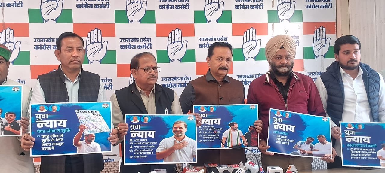 देवभूति उत्तराखण्ड में भी विभिन्न विभागों में घोटाले हुए हैं इन सभी घोटालों मेें भाजपा के नेतागण सम्मिलित रहे हैं। कांग्रेस इन घोटालों की ठोस न्यायिक जॉच करने की मांग करती रही है। परन्तु आज तक किसी की प्रकार की जॉच नही हो पाई है। जिससे ना केवल उत्तराखण्ड की देवभूमि कलंकित हुई है बल्कि देश में देवभूमि का नाम भी बदनाम हुआ है। उन्होंने कहा कि विभिन्न भर्तियों में पारदर्शिता लाने के लिए अखिल भारतीय कांग्रेस कमेटी द्वारा युवाओं के भाविष्य को मद्येनजर रखते हुए पेपर लीक को रोकने के लिए नया कानून बनाकर विश्वसनीय ढंग से परीक्षा के आयोजन की गारंगी दी गई है।