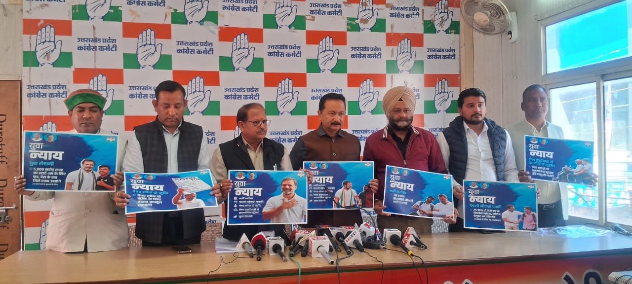 उत्तराखंड कांग्रेस अध्यक्ष करन माहरा ने प्रदेश कांग्रेस मुख्यालय में प्रेस को संबोधित करते हुए भारतीय राष्ट्रीय कांग्रेस द्वारा देश के युवाओं के लिए दिये गये पॉच ऐतिहासिक ग्रारंटियों का जिक्र करते हुए कहा कि लोकसभा चुनाव में देश के युवाओं का समर्थन अगर कांग्रेस गठबंधन को मिला और केन्द्र में कांग्रेस गठबंधन की सरकार बनी तो निश्चित रूप से देश के युवाओं का भविष्य उज्जवल होगा।