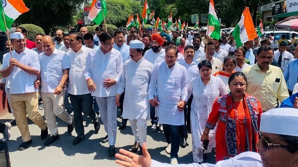 भारतीय सेना का मनोबल बढ़ाने के लिए और अपने सभी लोकतांत्रिक मतभेद भुलाते हुए देश की केंद्र सरकार के साथ इस राष्ट्रीय संकट की घड़ी में एक जुट हो कर खड़े होने का प्रदर्शन करते हुए आज उत्तराखंड कांग्रेस ने अध्यक्ष करन माहरा के नेतृत्व में प्रदेश कांग्रेस मुख्यालय से विशाल तिरंगा यात्रा निकली जिसमें प्रदेश कांग्रेस के सह प्रभारी सुरेन्द्र शर्मा, प्रदेश कांग्रेस के पूर्व अध्यक्ष प्रीतम सिंह , विधायक विक्रम सिंह नेगी, विधायक लखपत बुटोला, वरिष्ठ उपाध्यक्ष संगठन व प्रशासन सूर्यकांत धस्माना, महानगर अध्यक्ष डॉक्टर जसविंदर सिंह गोगी, महिला कांग्रेस अध्यक्ष ज्योति रौतेला, कांग्रेस सेवा दल प्रदेश अध्यक्ष हेमा पुरोहित समेत अनेक वरिष्ठ नेता व पार्टी कार्यकर्ताओं ने हाथ में देश का तिरंगा झंडा ले कर राजपुर रोड, घंटाघर, पलटन बाजार, डिस्पेंसरी रोड,दर्शन लाल चौक होते हुए घंटाघर डॉक्टर भीम राव अंबेडकर जी की मूर्ति तक जबरदस्त नारेबाजी करते हुए मार्च निकाला और बाबा साहब भीम राव अंबेडकर की मूर्ति पर माल्यार्पण करते हुए देश की एकता अखंडता व देश की केंद्र सरकार व देश की सेना के साथ डट कर खड़ा होने का संकल्प लिया।