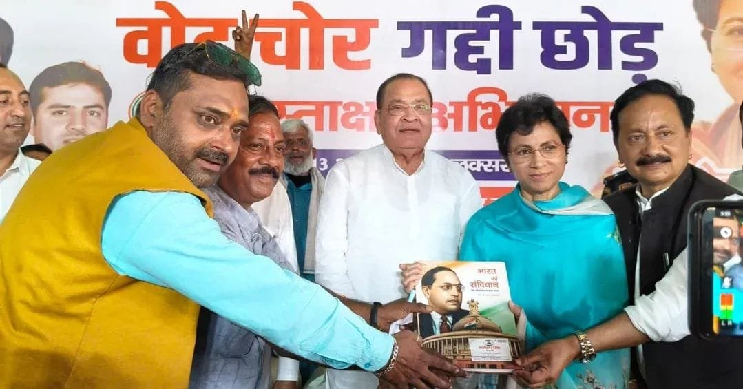 प्रदेश प्रभारी कुमारी शैलजा ने कहा कि वोट चोरी लोकतंत्र पर हमला है और जनता के विश्वास के साथ धोखा है। कांग्रेस पार्टी इस लड़ाई को सड़क से लेकर सदन तक जारी रखेगी। लोकतंत्र को कुचलने वालों को अब जनता माफ नहीं करेगी। कांग्रेस पार्टी का यह हस्ताक्षर अभियान सिर्फ एक प्रतीक नहीं, बल्कि भ्रष्ट सत्ता के खिलाफ जनक्रांति की शुरुआत है।