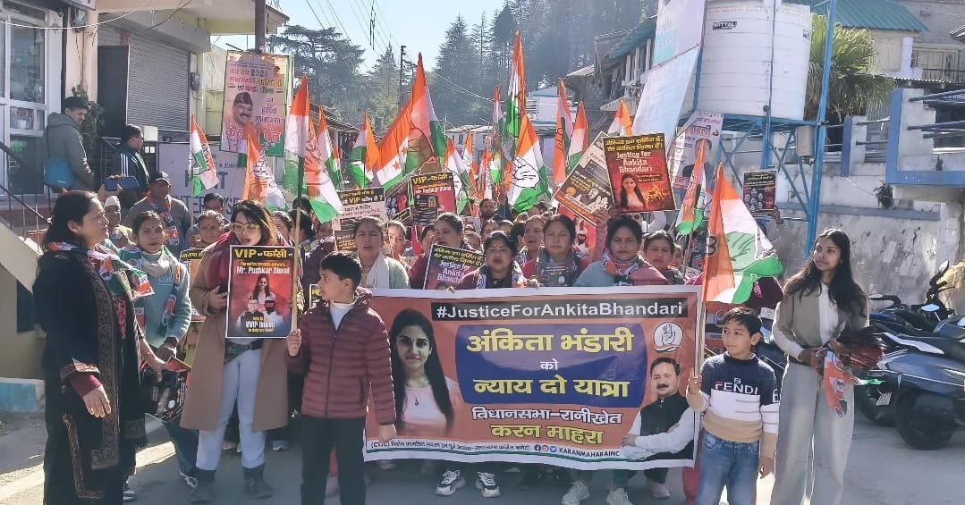 उत्तराखंड प्रदेश कांग्रेस कमेटी के पूर्व अध्यक्ष एवं कांग्रेस वर्किंग कमेटी (CWC) सदस्य करन माहरा के नेतृत्व में आज दिनांक 06 जनवरी 2026 को विधानसभा रानीखेत में “अंकिता भंडारी को न्याय दो यात्रा” का आयोजन किया गया। इस न्याय यात्रा में रानीखेत विधानसभा क्षेत्र के विभिन्न गांवों, मोहल्लों और बाजारों से भारी संख्या में आम नागरिकों, माताओं-बहनों, युवाओं, बुज़ुर्गों एवं कांग्रेस कार्यकर्ताओं ने भाग लिया और एक स्वर में उत्तराखंड की बेटी अंकिता भंडारी को न्याय दिलाने की मांग को बुलंद किया।