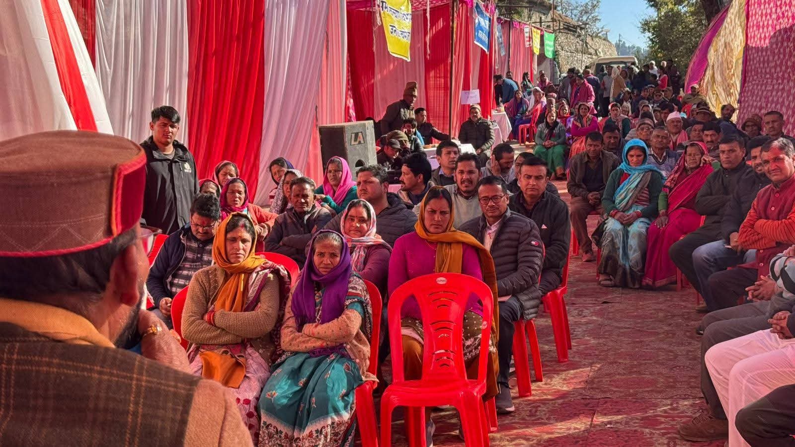 न्याय पंचायत लीलम, विकास खण्ड मुनस्यारी में उपजिलाधिकारी आशीष जोशी की अध्यक्षता में शिविर आयोजित किया गया। इस शिविर में 18 जनप्रतिनिधि और 56 अधिकारी/कर्मचारी उपस्थित रहे। लगभग 465 व्यक्तियों ने शिविर में भाग लिया, जबकि 519 लाभार्थियों को विभिन्न केंद्र और राज्य सरकार की कल्याणकारी योजनाओं से लाभान्वित किया गया। इस दौरान कुल 52 शिकायतें प्राप्त हुईं, जिनमें से 43 का मौके पर निस्तारण किया गया और शेष 09 को संबंधित विभागों को प्रेषित किया गया। शिविर में राजस्व, ग्राम्य विकास, पंचायत राज, कृषक कल्याण, उद्यान, समाज कल्याण, स्वास्थ्य, महिला बाल विकास, आयुष, पशुपालन, खाद्य आपूर्ति, श्रम, शिक्षा, लोक निर्माण, पेयजल, सहकारिता और अन्य विभागों के स्टॉल लगाए गए।