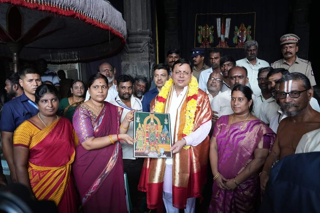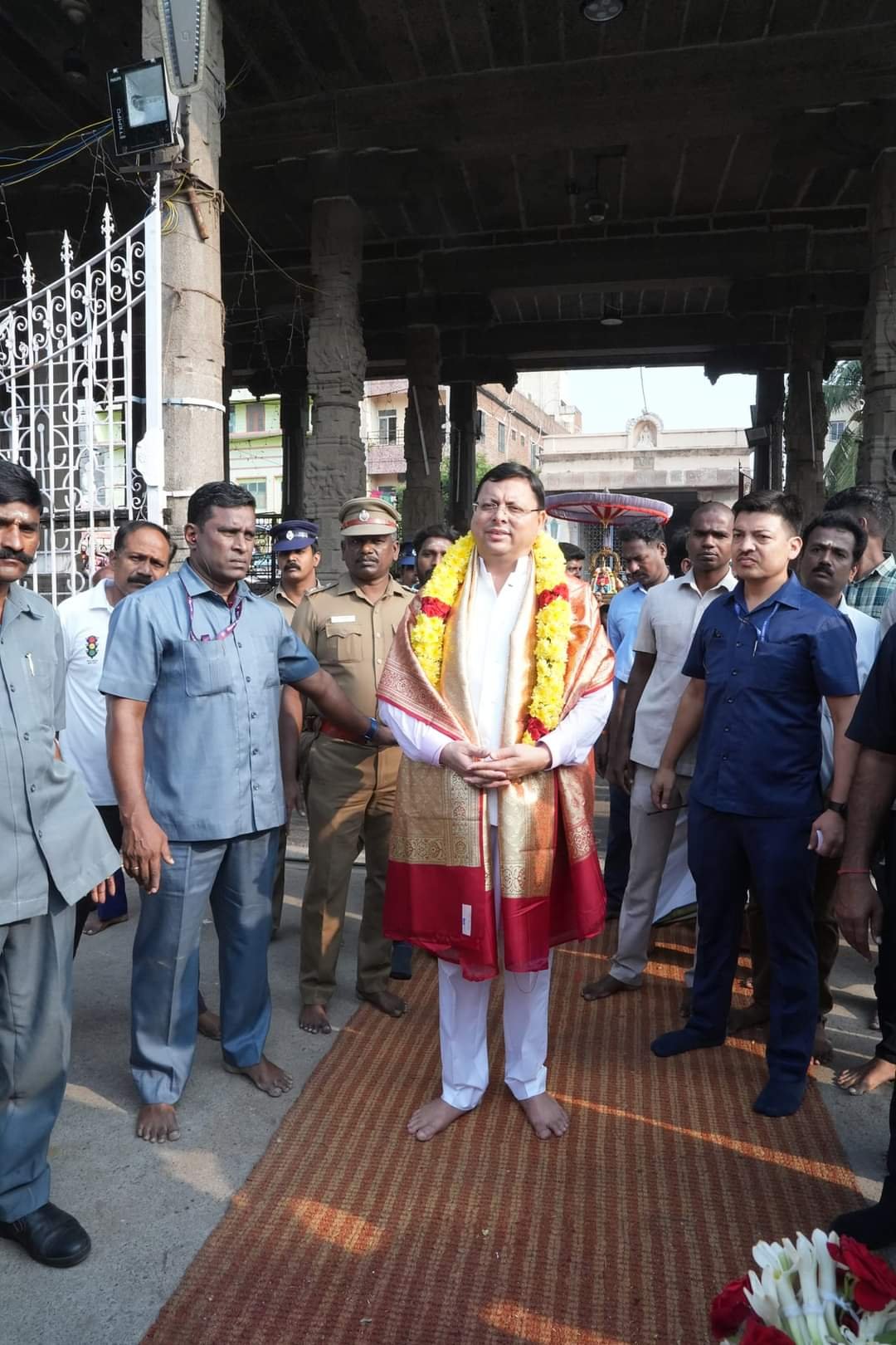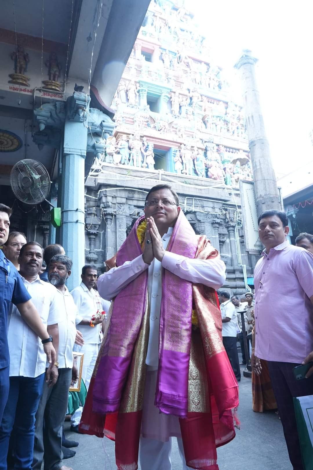 चेन्नई में रोड शो से पहले भगवान के दरबार में धामी