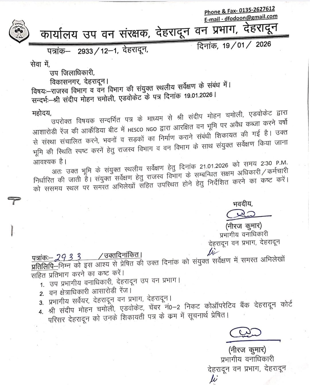 पर्यावरणविद अनिल जोशी पर जमीन कब्जाने का आरोप, कांग्रेस नेता और एडवोकेट संदीप चमोली ने देहरादून के डीएफओ से की जांच की मांग