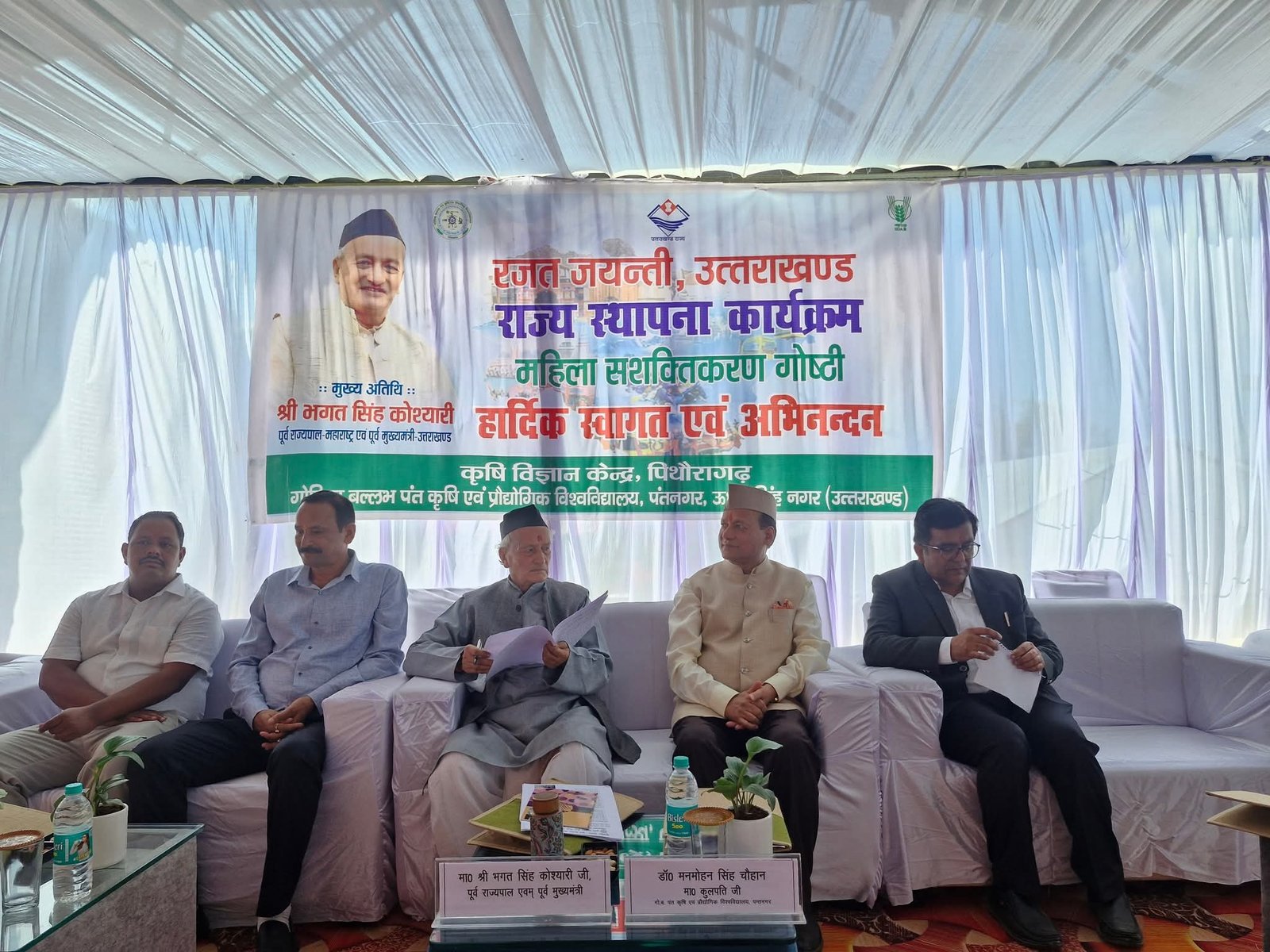 रजत जयंती उत्तराखंड स्थापना दिवस के अवसर पर कृषि केंद्र गैना में एक दिवसीय महिला सशक्तिकरण गोष्ठी का आयोजन किया गया। कार्यक्रम का शुभारंभ निदेशक प्रसार शिक्षा, पंतनगर विश्वविद्यालय द्वारा समस्त अतिथियों के स्वागत के साथ हुआ, जिन्होंने कार्यक्रम की रूपरेखा प्रस्तुत की। कार्यक्रम में मुख्य अतिथि के रूप में पूर्व उप राज्यपाल महाराष्ट्र, गोवा, पूर्व मुख्यमंत्री भगत सिंह कोश्यारी जी ने प्रतिभाग किया व कार्यक्रम में कुलपति विश्वविद्यालय मनमोहन सिंह चौहान विशिष्ट अतिथि रहे।