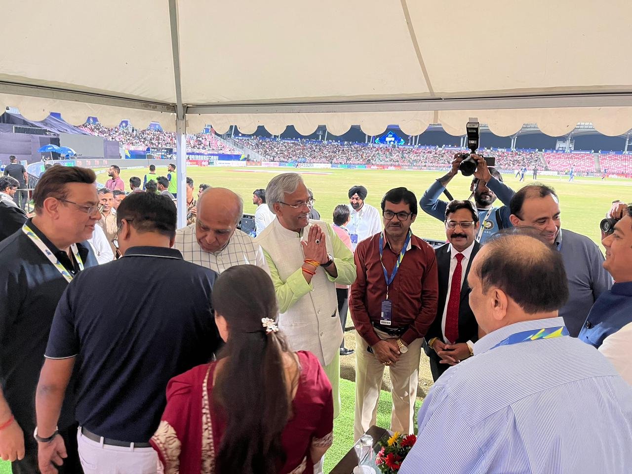 देहरादून में आयोजित उत्तराखंड प्रीमियर लीग सीजन–2 (UPL-2) के रोमांचक फाइनल मुकाबले में सांसद हरिद्वार एवं पूर्व मुख्यमंत्री त्रिवेन्द्र सिंह रावत तथा उत्तर प्रदेश के पूर्व मुख्यमंत्री एवं सांसद, डुमरियागंज लोकसभा के जगदम्बिका पाल जी ने संयुक्त रूप से खिलाड़ियों का उत्साहवर्धन किया। फाइनल मुकाबला हरिद्वार एल्मास और नैनीताल टाइगर्स के बीच खेला गया, जिसमें हरिद्वार एल्मास ने शानदार प्रदर्शन करते हुए विजय प्राप्त की। सांसद त्रिवेन्द्र सिंह रावत ने विजेता टीम को हार्दिक बधाई देते हुए कहा कि यह प्रतियोगिता केवल एक खेल आयोजन नहीं, बल्कि उत्तराखंड की युवा ऊर्जा, खेल भावना और अनुशासन का जीवंत उत्सव है। खिलाड़ियों की लगन और टीम भावना प्रदेश के युवाओं के लिए प्रेरणास्रोत है।