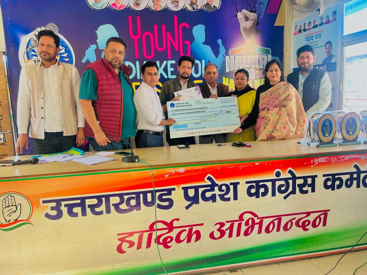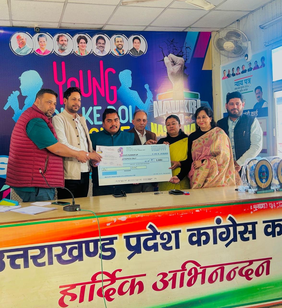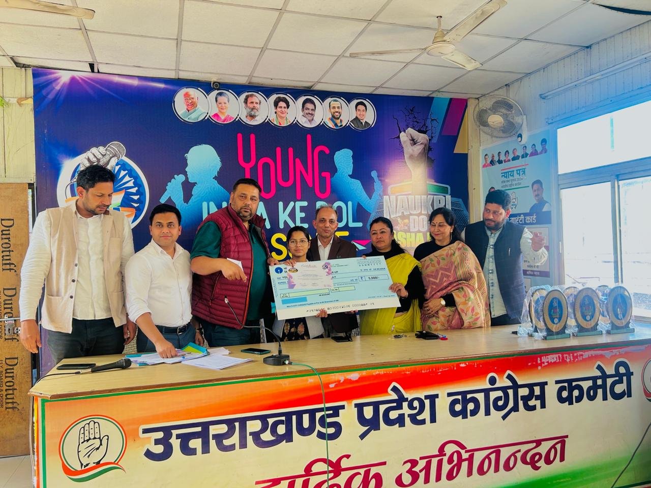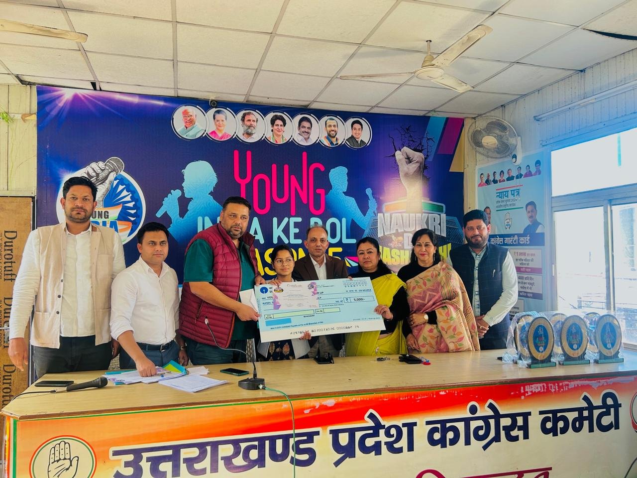 जो पांच लोग विजेता रहे उनमें टिहरी गढ़वाल की डीबीएस कॉलेज से स्नातक प्रथम वर्ष की छात्रा रिया राणा, पौड़ी गढ़वाल से पारस रावत, देहरादून से रविन्द्र सिंह, जौनसार से धवजवीर सिंह और देहरादून के एडवोकेट आयुष रतूड़ी के नाम शामिल हैं । इसके पश्चात उपरोक्त सभी विजेता दिल्ली राष्ट्रीय प्रीतियोगिता के लिए रवाना किए जाएँगे । इस दौरान सभी विजेताओं को पुरस्कृत किया गया सभी प्रतिभागियों को पार्टिसिपेशन सर्टिफिकेट दिया गया और निर्णायक मंडली को भी युवा कांग्रेस की ओर से मोमेंटो देकर सम्मानित किया गया