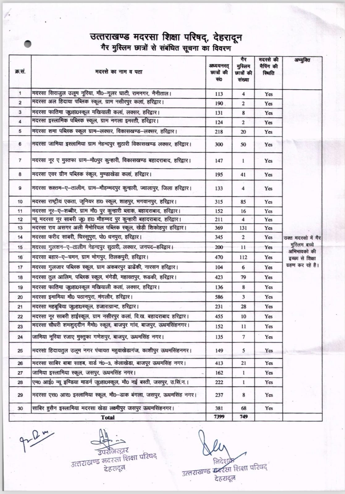 दसौनी ने कहा कि देखा जाए तो मदरसों में शिक्षा या तो मदरसा बोर्ड या वक्फ बोर्ड के माध्यम से प्रदान की जाती है और यह दोनों ही सरकार के अधीन है ऐसे में अगर प्रदेश में ऐसे हालात उत्पन्न हो गए हैं कि गैर मुस्लिम परिवारों को अपने बच्चे मदरसों में पढ़ाई के लिए भेजने पड़ रहे हैं तो निश्चित रूप से ये उत्तराखंड सरकार के लिए आत्म अवलोकन का समय है। दसौनी ने कहा कि ये उत्तराखंड भाजपा का नया हिंदुत्व मॉडल है। दसौनी ने कहा कि निश्चित रूप से उत्तराखंड के शिक्षा मंत्री धन सिंह रावत से यह सवाल पूछा जाना चाहिए कि आज यदि राज्य के 30 मदरसों में 749 हिंदू बच्चे शिक्षा ग्रहण कर रहे है, और कुल छात्रों की संख्या 7399 तो इसका मतलब दस प्रतिशत छात्र ग़ैर मुस्लिम है।