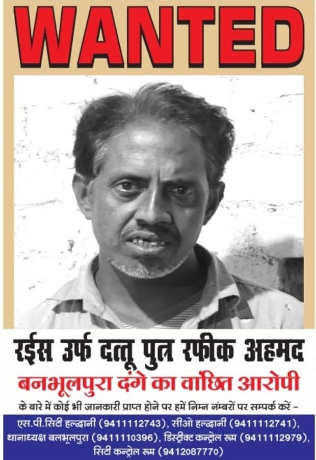 पुलिस टीमों ने घटना स्थल के आसपास के CCTV के के आधार पर अभी तक 42 उपद्रवियों को गिरफ्तार कर उनके कब्जे से अवैध हथियार और कारतूस बरामद किया है। हिंसक घटना में संलिप्त उपद्रवियों में से 9 वॉन्टेड दंगाइयों के पोस्टर शुक्रवार को हल्द्वानी पुलिस-प्रशासन ने जारी किए। पुलिस ने वांछित उपद्रवियों के पोस्टर शहर में जगह–जगह चस्पा कर दिए हैं।