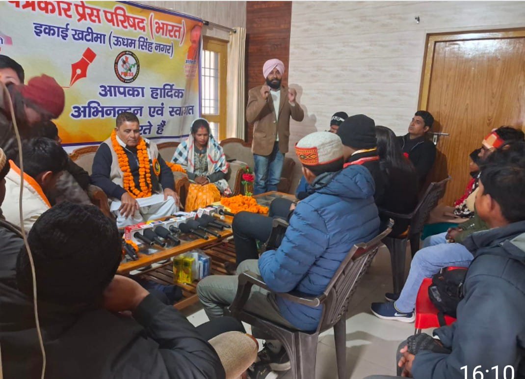 पत्रकार प्रेस परिषद खटीमा इकाई की बुधवार को लोक निर्माण अतिथि गृह में पत्रकार प्रेस परिषद के राष्ट्रीय सचिव, उत्तराखंड प्रदेश अध्यक्ष तथा उत्तर प्रदेश प्रभारी अशोक गुलाटी के मुख्य आतिथ्य में एक महत्वपूर्ण बैठक का आयोजन किया गया।वहीं राष्ट्रीय सचिव अशोक गुलाटी के खटीमा पहुंचने पर उपस्थित समस्त पत्रकारों ने फूल मालाओं के साथ उनका भव्य स्वागत किया। वहीं इस अवसर पर आयोजित कार्यक्रम का सफल संचालन वरिष्ठ पत्रकार गोरख नाथ ने किया।खटीमा इकाई के अध्यक्ष विकासशील ने नवगठित कार्यकारिणी की घोषणा की। जिसमें सर्व सहमति से हरप्रीत सिंह को खटीमा इकाई का महासचिव, अमित कुमार को सचिव, मनजीत सिंह को सह सचिव, अरविंद कुमार व नदीम हुसैन को उपाध्यक्ष, नितेश अग्रवाल को कोषाध्यक्ष, मुकेश गुप्ता तथा सोनिया कुमारी को संरक्षक व ममता शील को प्रचार मंत्री नियुक्त किया गया है। नवनियुक्त पदाधिकारियों का फूल मालाओं के साथ भव्य स्वागत करते हुए उनको शुभकामनाएं दी गई। इस मौके पर सितारगंज पत्रकार प्रेस परिषद के अध्यक्ष गुरदीप सिंह ने कहा कि पत्रकार जनता और सरकार के बीच एक मजबूत सेतु का काम करता है। उन्होंने कहा कि समाज के उत्पीड़ित वर्ग को न्याय दिलाने के साथ-साथ समाज और राष्ट्र निर्माण में भी पत्रकार की एक अहम भूमिका है। उन्होंने स्वच्छ, निष्पक्ष, पारदर्शी, स्वतंत्र और लोकतांत्रिक तरीके से पत्रकारिता के क्षेत्र में कार्य करते हुए संगठन को मजबूत बनाने की बात कही। इसके साथ ही उन्होंने जरूरत पड़ने पर संगठन को हर संभव सहयोग करने का आश्वासन भी दिया। जिला सचिव पद पर नियुक्त किए जाने की बात कही।इस मौके पर नानकमत्ता इकाई के अध्यक्ष वरिष्ठ पत्रकार अनिल सागर, सितारगंज इकाई के अध्यक्ष गुरदीप सिंह, क्राइम उत्तराखंड की संपादक रिंपी, टनकपुर से पहुंचे पत्रकार नवीन भट्ट, अरविंद कुमार तथा ममता शीला आदि ने अपने विचार व्यक्त करते हुए संगठन को मजबूत और सशक्त बनाने की बात कही।महत्वपूर्ण बैठक में पर पत्रकारों की समस्याओं, पत्रकारों की सुरक्षा, पत्रकार हितों, पत्रकारों के उत्पीड़न तथा पत्रकारिता के क्षेत्र में आने वाली तमाम चुनौतियों पर विस्तार से विचार विमर्श किया गया।नवनियुक्त अध्यक्ष विकासशील ने आज की बैठक को सफल बनाने हेतु उपस्थित समस्त पत्रकारों को धन्यवाद एवं आभार ज्ञापित किया। साथ ही उन्होंने विश्वास दिलाया कि पत्रकार प्रेस परिषद खटीमा इकाई को सभी पत्रकार साथियों के सहयोग एवं सुझाव से मजबूत और सशक्त बनाया जाएगा। इसके साथ ही उन्होंने कहा कि वह हर परिस्थिति में पत्रकार हितों की सुरक्षा के लिए कंधे से कंधा मिलाकर चलने के लिए कृत संकल्प हैं।पत्रकार प्रेस परिषद भारत के राष्ट्रीय सचिव, उत्तराखंड प्