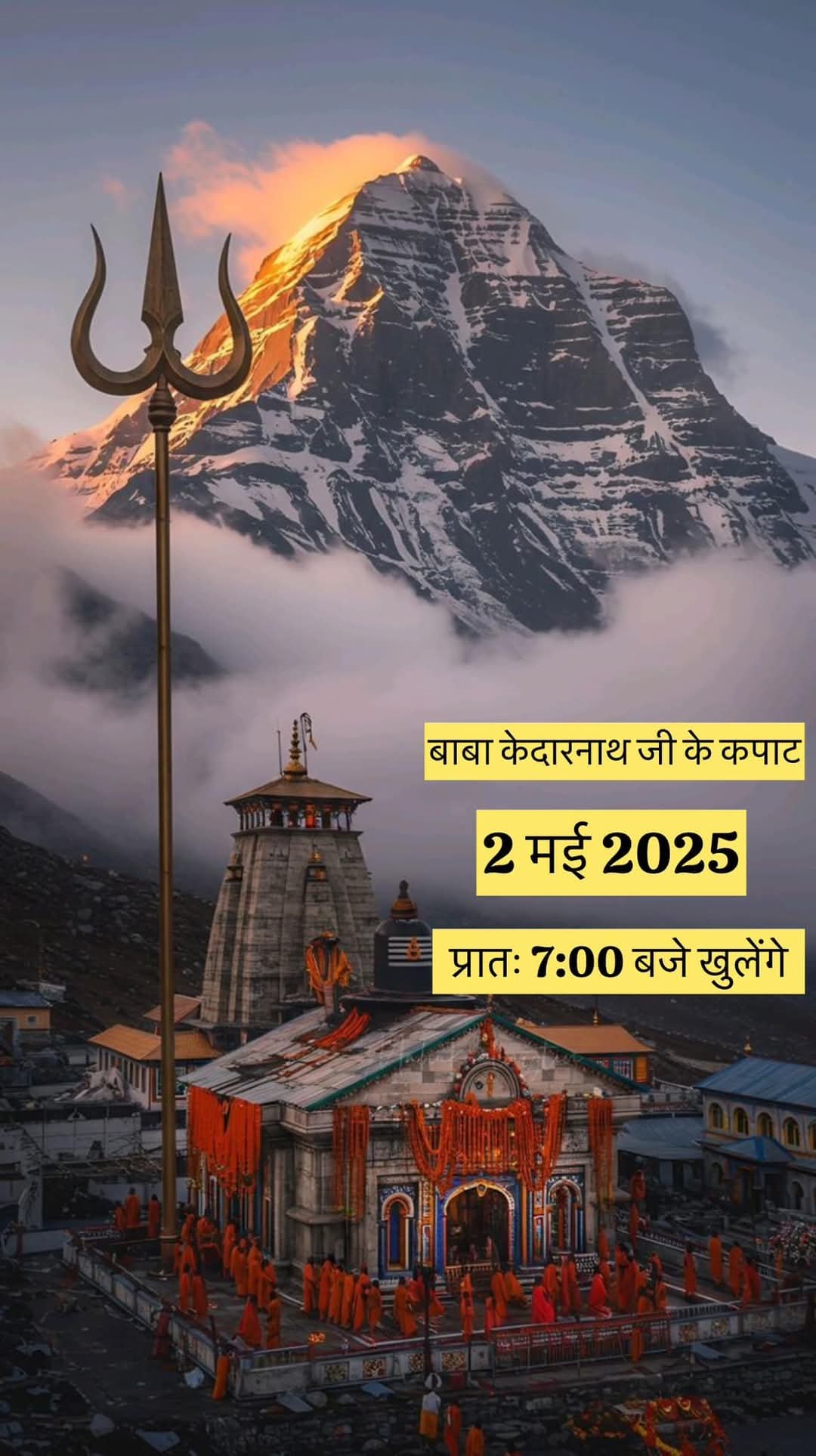 शिव के विश्वप्रसिद्ध बारह ज्योतिर्लिंग में से एक श्री केदारनाथ धाम के कपाट 2 मई को प्रात: 7 बजे बैशाख मास, मिथुन राशि, वृष लग्न में विधि-विधान से खुलेंगे। 27 अप्रैल को भगवान भैरवनाथ जी की पूजा होगी। जबकि बाबा केदार की पंच मुखी डोली 28 अप्रैल को श्री ओंकारेश्वर मंदिर उखीमठ से केदारनाथ धाम हेतु प्रस्थान करेगी।