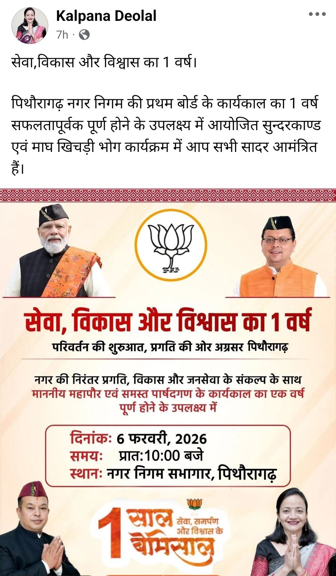 महर ने कहा निगम कार्यालय जन मानस के कार्यों के लिए है न कि नेताओं के व्यक्तिगत जश्न मनाने के लिए। मोनिका महर ने कहा इससे पहले भी बहुत से नेता नगर पालिका अध्यक्ष रहे और उन्होंने भी अपने कार्यकाल में अपने व्यक्तिगत कार्यक्रम किए परंतु उसके लिए उन्होंने कभी नगर पालिका के कार्यालय का दुरुपयोग नहीं किया। मोनिका महर ने तंज कहते हुए कहा कि शायद मेयर पिथौरागढ़ ये भूल गईं हैं कि ये कार्यालय आम जन के लिए है अगर आपने अपना कोई व्यक्तिगत कार्यक्रम करना है तो आप अपने आवास पर या किसी अन्य स्थान पर कर सकते हैं। उन्होंने ये भी कहा कि अगर अपना राजनैतिक व्यक्तिगत खिचड़ी भोज कार्यक्रम करना ही था तो वो निगम के नजदीक राम लीला मैदान में या किसी व्यक्तिगत स्थल पर कर सकते थे , ताकि खिचड़ी भोज भी हो जाए और निगम में कार्य भी निरंतर चलता रहे। मोनिका महर ने निशाना साधते हुए कहा कि नगर निगम कार्यालय किसी व्यक्ति विशेष का नहीं होता फिर वो मेयर हो या प्रशासन , उन्होंने अपनी राजनीति से प्रेरित इस कार्यक्रम को किया है जो सरकारी संपत्ति का दुरुपयोग होने के साथ साथ एक गलत परिपाटी है। नगर निगम में इस तरह का काम करके दूसरे विभागों को भी इस तरह से कार्यक्रम करने का मौका दिया है, अगर इसी तरह हर विभाग सरकारी कार्यालयों में ऐसे ही दावत करते रहे तो जनता का कामकाज ठप हो जाएगा। मोनिका महर ने कहा कि इस तरह का काम करके नगर निगम ने सभी विभागों के लिए भी एक परिपाटी सेट कर दी है जो किसी भी लिहाज से सही नहीं है। मोनिका महर ने कहा कि क्या सत्ता के नशे में वो ये भी भूल गए कि नगर निगम कार्यालय उनकी पार्टी का कार्यालय नहीं है कि वहां उनके जो मन आए वो कर लें ,ये कार्यालय आम जनता के कार्यों के लिए होता है जिसको प्राथमिकता देना आवश्यक है । मोनिका महर ने डीएम पिथौरागढ़ से इस मामले की जांच करने की मांग की है। ताकि लापरवाही बरतने वालों को सबक सिखाया जा सके महर ने कहा कि डीएम को जल्द से जल्द जांच के बाद जरूरी एक्शन लेना चाहिए।