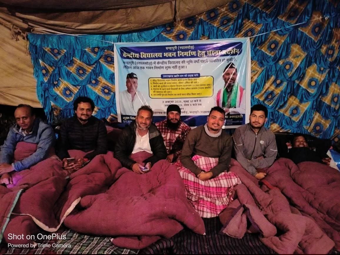 रुद्रप्रयाग में केंद्रीय विद्यालय भवन निर्माण की माँग को लेकर चल रहे आंदोलन के तहत 24 घंटे का सतत धरना 25 अक्टूबर से प्रारंभ हो चुका है। बीती रात धरना स्थल पर श्री मनोज वैष्णव, राहुल पंवार, नवीन पंवार, प्रकाश पंवार, आशु कंडारी सहित भटवाड़ी सुनार के युवा साथी भी पूरे उत्साह के साथ मौजूद रहे। आंदोलनकारियों ने आरोप लगाया है कि रुद्रप्रयाग जिले का शासन-प्रशासन अपनी निरंकुशता और उदासीनता से बाहर नहीं आ पाया है।