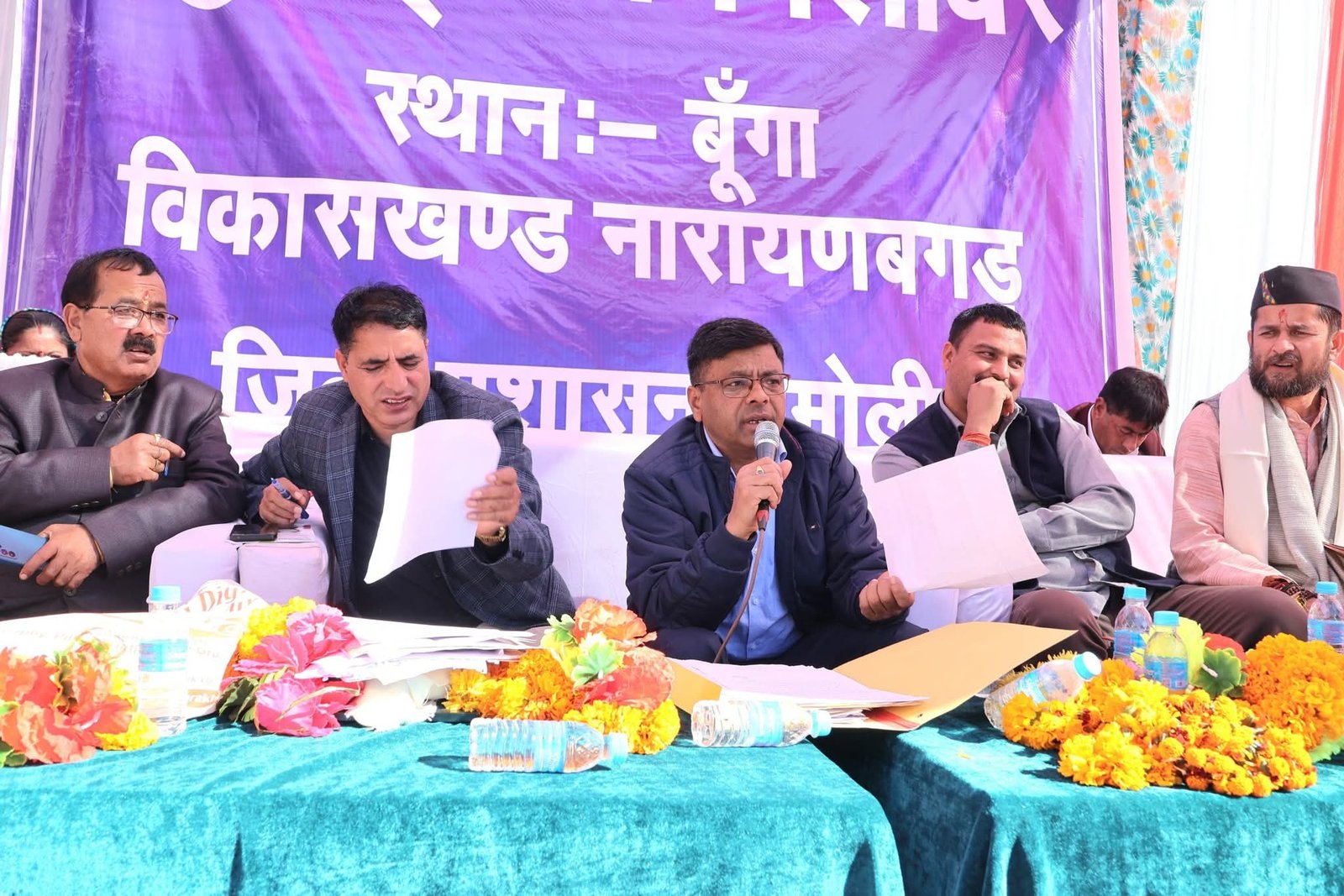 चमोली के विकासखंड नारायणबगड़ के बूंगा ग्राम पंचायत में आज मुख्यमन्त्री Pushkar Singh Dhami के निर्देश पर ‘’सरकार जानता के द्वार’’ कार्यक्रम के तहत बहुउद्देशीय शिविर का आयोजन किया गया। कार्यक्रम की अध्यक्षता परियोजना निदेशक आनंद सिंह भाकुनी ने की ।