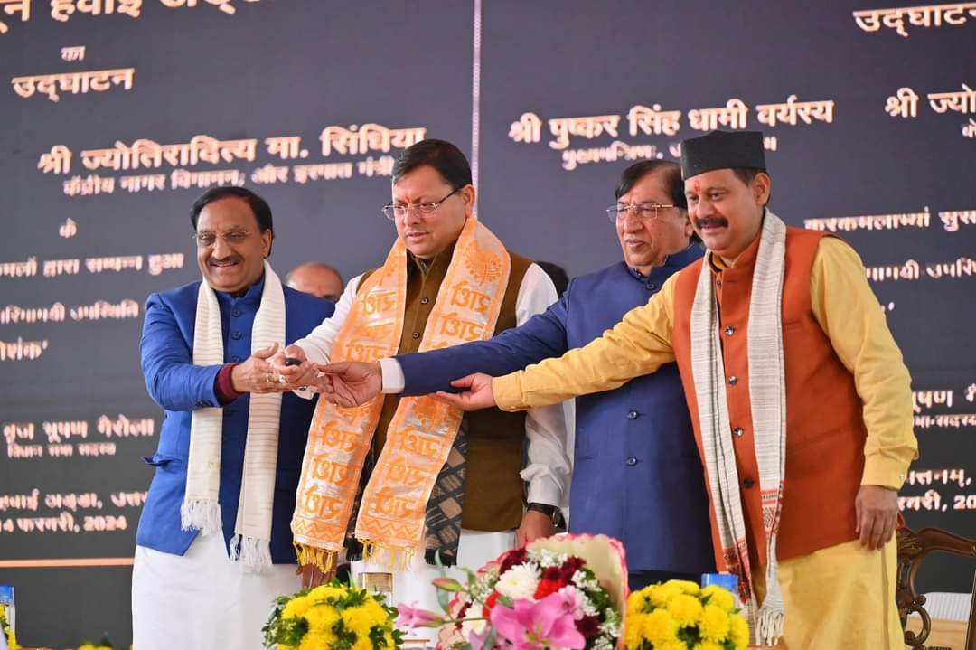 मुख्यमंत्री पुष्कर सिंह धामी ने आज जौलीग्रांट एयरपोर्ट पर नवनिर्मित टर्मिनल भवन फेज-2 का लोकार्पण किया। इस अवसर पर केन्द्रीय नागर विमानन मंत्री ज्योतिरादित्य सिंधिया ने भी कार्यक्रम में वर्चुअल प्रतिभाग किया। इस अवसर पर केन्द्रीय मंत्री ज्योतिरादित्य सिंधिया ने कहा कि उनके लिए यह क्षण कई पहलुओं से भावुक और महत्वपूर्ण क्षण है। उन्होंने कहा कि देवभूमि उत्तराखण्ड से उनका पहले से नाता है। उन्होंने 05 साल उत्तराखण्ड से शिक्षा ग्रहण की है। उन्होंने कहा कि मंत्रालय द्वारा पिथौरागढ़-हिंडन हवाई सेवा के लिए कार्यवाही शुरू की जा चुकी है।