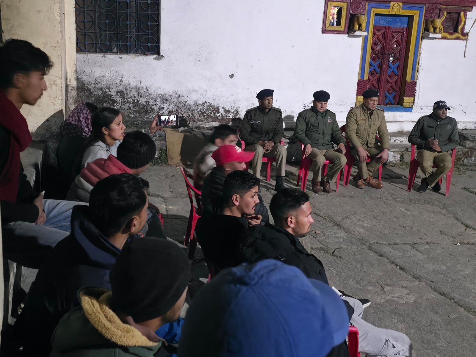 पुलिस अधीक्षक रुद्रप्रयाग के कुशल निर्देशन में जनपद में संचालित “अभियान प्रहरी पड़ाव” के अन्तर्गत गत दिवस 14 मार्च 2026 की रात्रि में कोतवाली सोनप्रयाग पुलिस द्वारा ग्राम त्रियुगीनारायण में 25वीं रात्रि चौपाल का आयोजन किया गया। प्रभारी निरीक्षक सोनप्रयाग राकेन्द्र कठैत की अध्यक्षता में आयोजित इस कार्यक्रम का मुख्य उद्देश्य जनता और पुलिस के मध्य आपसी सामंजस्य को बढ़ाना तथा ग्रामीणों के बीच सुरक्षा का भाव सुदृढ़ करना रहा। चौपाल के दौरान पुलिस अधिकारियों ने ग्रामवासियों के साथ सीधा जन-संवाद स्थापित करते हुए पुलिस और जनता के बीच की दूरी को समाप्त कर मधुर सम्बन्धों की नींव रखने का प्रयास किया।