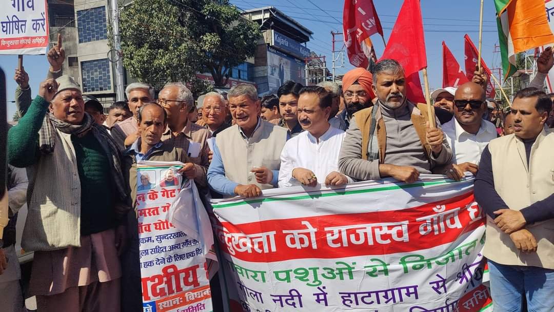 उत्तराखंड में बिंदुखत्ता को राजस्व गांव बनाने की मांग तेज़ हो गई है । बिंदुखत्ता संघर्ष समिति के साथ इंडिया गठबंधन ने बुधवार को विधानसभा कूच किय । कूच का नेतृत्व पूर्व सीएम हरीश रावत ने किया। सैकड़ों की संख्या में इंडिया गठबंधन से जुड़े नेता और कार्यक्रताओं को भारी पुलिस बल और बैराग्रेडिंग से रोका गया।