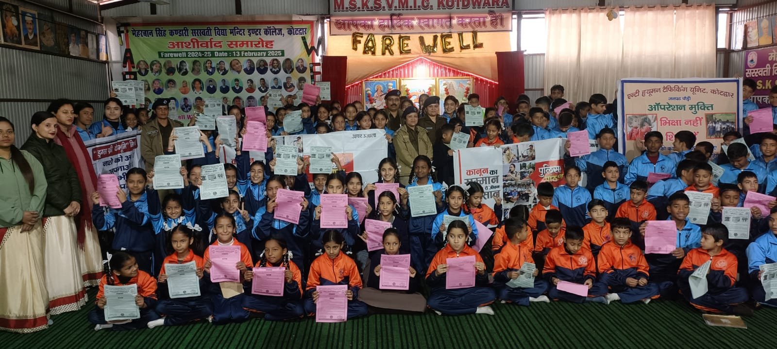 इसी क्रम में आज दिनांक28.02.2025 को सरस्वती विद्या मंदिर इंटर कॉलेज, कोटद्वार में आयोजित की गयी “पुलिस की पाठशाला” कार्यक्रम में पुलिस उपाधीक्षक कोटद्वार निहारिका सेमवाल अतिथि के रूप में पहुंची। जागरूकता कार्यक्रम के दौरान निहाररिका सेमवाल ने स्कूल के समस्त छात्र-छात्राओं और स्कूल स्टॉफ को वर्तमान में बढ़ते साइबर अपराधों जैसे फ़िशिंग,बुलिंग,फ्रॉड लिंक, थर्ड पार्टी ऐप तथा मानव तस्करी, भिक्षावृत्ति, वेश्यावृत्ति, अपहरण, महिला/बालिका सुरक्षा, सुरक्षित स्पर्श (Good Touch & Bad Touch) युवा पीढ़ी नशा के प्रति जागरूक करते हुए इसके दुष्परिणामों के बारे में बताकर जागरूक करने के साथ बच्चों व अध्यापकों से फीडबैग भी लिया गया। उपस्थित पुलिस टीम द्वारा स्कूली बच्चों व अध्यापकों के साथ मिलकर नशे से दूर रहने,ट्रैफिक नियमों का पालन करने की शपथ भी दिलाने के साथ ही महत्वपूर्ण हेल्पलाइन नंबर जैसे डायल-112, महिला हेल्पलाइन- 1090,बाल सहायता हेतु-1098,साइबर क्राइम-1930 के बारे में जानकारी प्रदान की गयी।