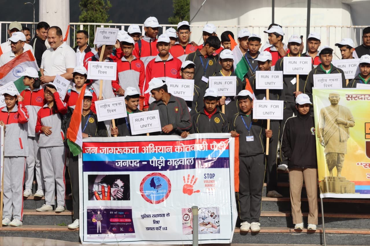 Run for Unity के कार्यक्रम में प्रतिभागियों ने “एक भारत, श्रेष्ठ भारत” और “राष्ट्र की एकता – हमारी पहचान” के नारों के साथ पौड़ी के जनरल विपिन सिंह रावत पार्क से पुलिस लाईन पौड़ी तक पूरे जोश और देशभक्ति के साथ भाग लिया। इस कार्यक्रम के दौरान प्रशासन एवं पुलिस अधिकारियों ने प्रतिभागियों को राष्ट्रीय एकता के महत्व एवं सरदार पटेल के योगदान के बारे में बताते हुए उनसे प्रेरणा लेने हेतु प्रेरित किया गया। साथ ही इस कार्यक्रम में उपस्थित सभी छात्र-छात्राओं व लोगों को नशे के दुष्प्रभावों, साइबर जगरूकता, व महिला संबंधी अपराधों के बारे में भी जागरूक किया गया।