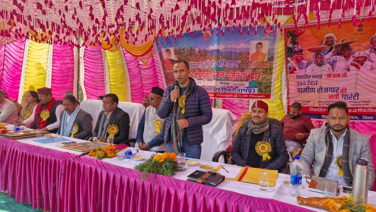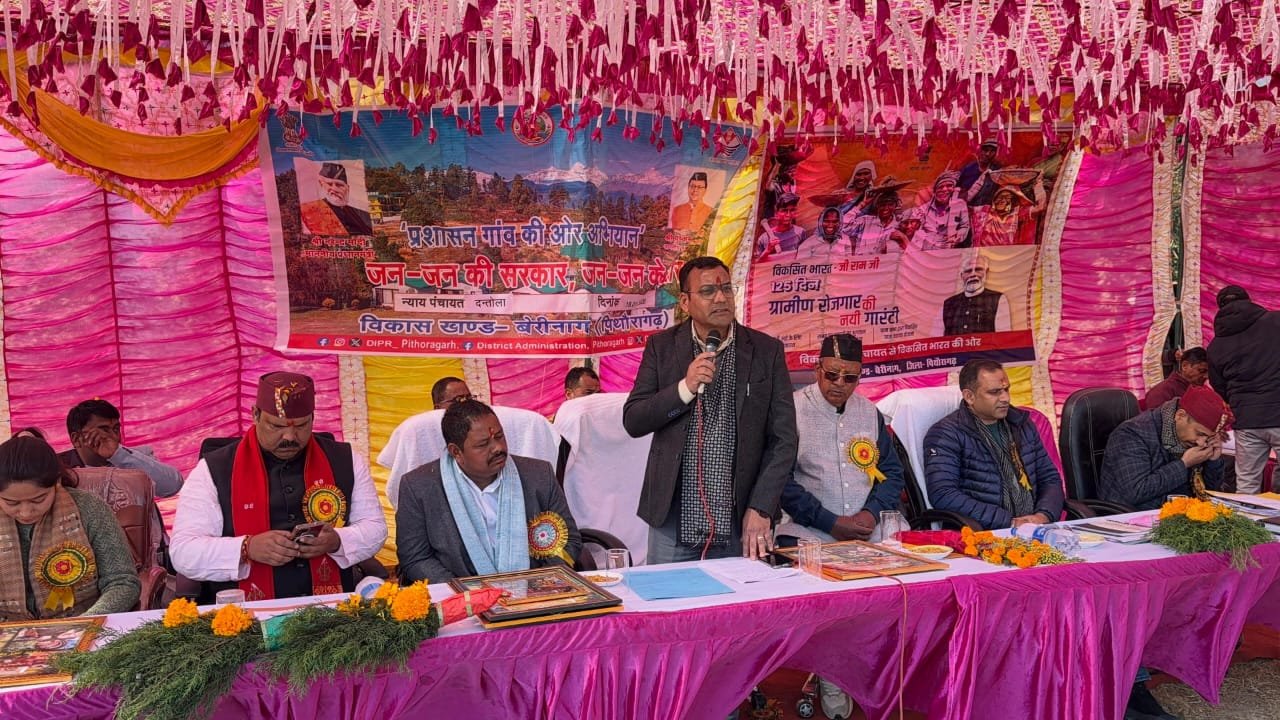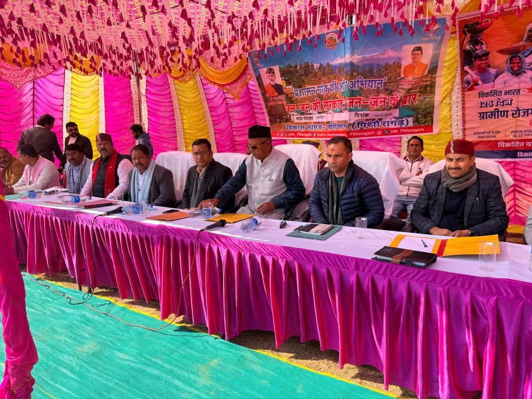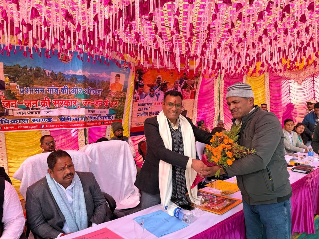 जन-जन की सरकार, जन-जन के द्वार” कार्यक्रम के तहत पिथौरागढ़ की 64 न्याय पंचायतों में दिनांक 17 दिसम्बर 2025 से 12 फरवरी 2026 तक व्यापक स्तर पर जनसुनवाई एवं सेवा प्रदाय शिविरों का आयोजन किया जा रहा है। इसी कड़ी में आज न्याय पंचायत दन्तोला स्थित राजकीय इंटर कॉलेज पांखू, विकास खण्ड बेरीनाग में एक दिवसीय शिविर का आयोजन किया गया। कार्यक्रम में दर्जा मंत्री हेमराज सिंह बिष्ट और डीजल पिथौरागढ़ आशीष भटगांई मौजूद रहे।शिविर में दूर-दराज एवं ग्रामीण क्षेत्रों से बड़ी संख्या में नागरिक अपनी-अपनी समस्याएं, शिकायतें एवं मांगें लेकर उपस्थित हुए। जनसुनवाई के दौरान जिलाधिकारी द्वारा आमजन की समस्याओं को गंभीरता से सुना गया तथा संबंधित विभागों के अधिकारियों को मौके पर ही समाधान के निर्देश दिए गए। इस अवसर पर सैकड़ों जनसमस्याओं का त्वरित समाधान किया गया, जिससे ग्रामीणों में विशेष संतोष एवं विश्वास का वातावरण देखने को मिला।