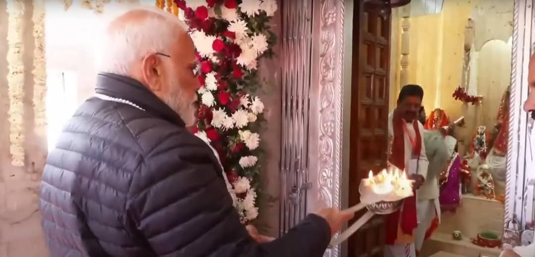 एक दिवसीय दौरे पर उत्तरकाशी पहुंचे प्रधानमंत्री नरेंद्र मोदी ने मुखवा गांव में मां गंगा के शीतकालीन गद्दी स्थल पर पूजा-अर्चना कर देशवासियों के लिए सुख-समृद्धि की कामना की। प्रधानमंत्री ने धार्मिक विधि-विधान से मां गंगा की पूजा कर भोग चढ़ाया। इस दौरान स्थानीय ग्रामीणों ने रांसों नृत्य से प्रधानमंत्री का स्वागत किया।