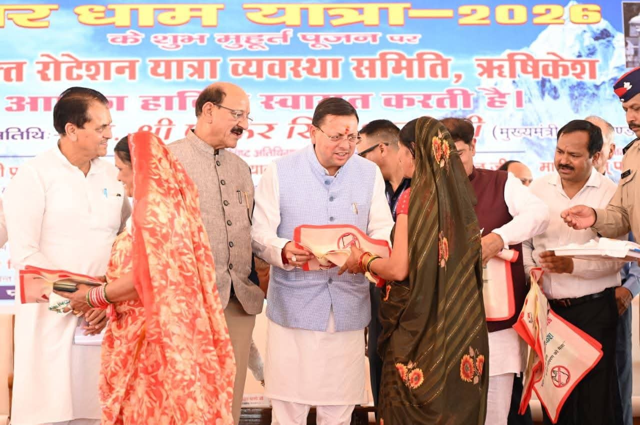 मुख्यमंत्री पुष्कर सिंह धामी ने आज ऋषिकेश में संयुक्त रोटेशन यात्रा व्यवस्था समिति द्वारा आयोजित चारधाम यात्रा-2026 के शुभारम्भ कार्यक्रम में प्रतिभाग किया। इस दौरान मुख्यमंत्री ने चार धाम यात्रा पर जाने वाली बसों को हरी झंडी दिखाकर रवाना किया। उन्होंने श्रद्धालुओं के लिए स्थापित नि:शुल्क स्वास्थ्य शिविर का निरीक्षण भी किया।