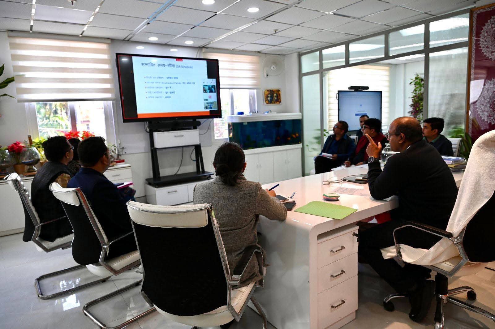 मुख्य निर्वाचन अधिकारी डॉ. बी.वी.आर.सी पुरुषोत्तम ने सचिवालय में आगामी विशेष गहन पुनरीक्षण की तैयारियों के संबंध में सभी जनपदों के ज़िलाधिकारियों के साथ वीडियो कॉफ्रेंस के माध्यम से समीक्षा बैठक की। बैठक में मुख्य निर्वाचन अधिकारी ने आगामी एसआईआर के दृष्टिगत सभी जनपदों की प्रशासनिक तैयारियों की जनपदवार समीक्षा कर विस्तृत जानकारी ली।